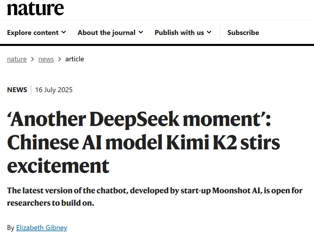 據新華社報道,英國《自然》雜誌網站16日發表文章說,中國人工智能(AI)模型Kimi K2發布後引發轟動,世界迎來「又一個DeepSeek時刻」。中國在6個月內推出第二款令人印象深刻的模型,表明這一成功並非偶然。文章摘要如下: