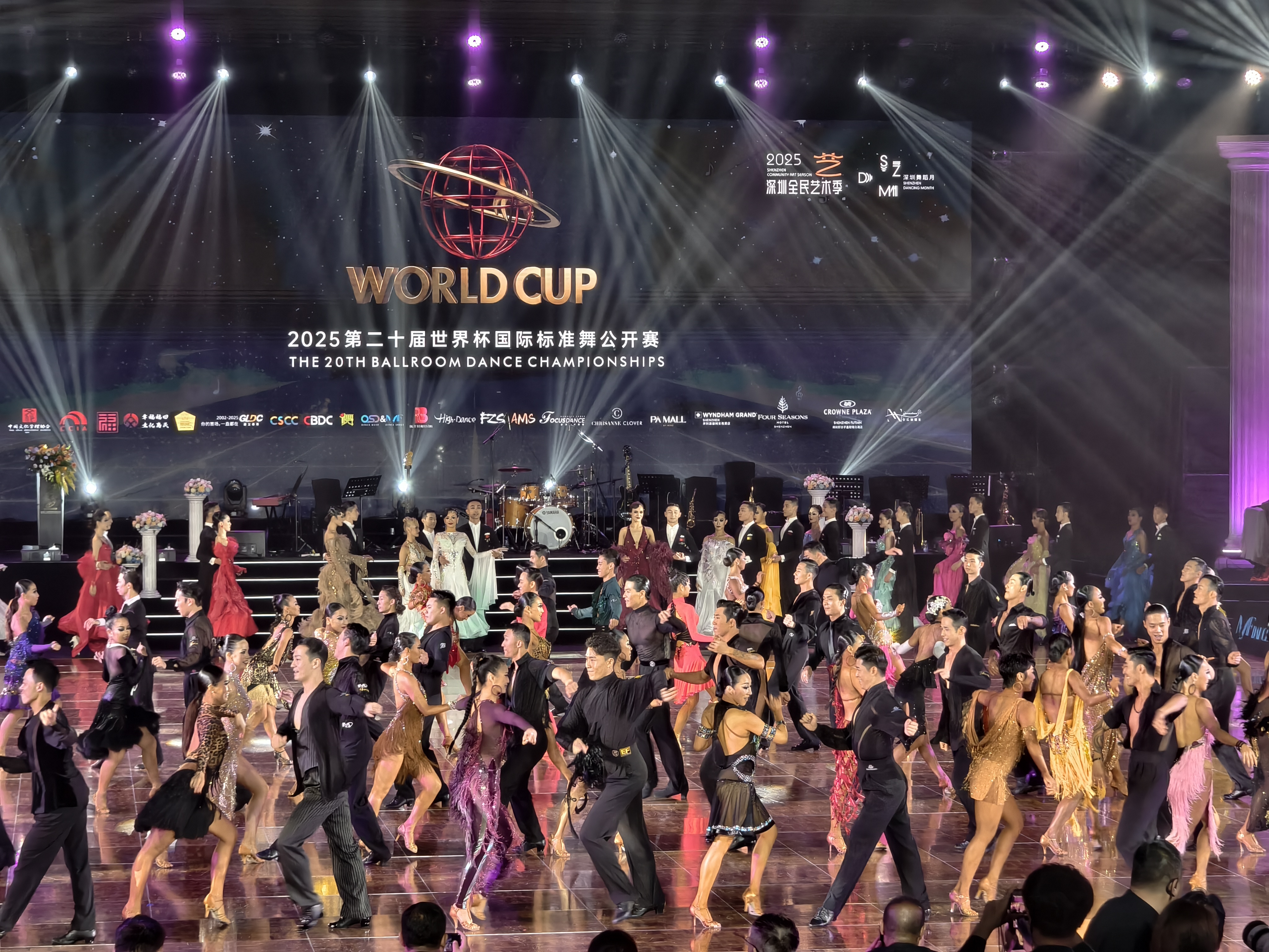 (大公文匯網記者胡永愛)當華爾茲的優雅弧線再次旋轉於鵬城的舞台,當探戈的熾烈頓挫對話夢想的摯愛。一場屬於中外國標舞者的年度競技盛宴,在深圳上演。7月12日—19日,2025第二十屆世界盃國際標準舞公開賽於深圳會展中心5號館啟幕,比賽以國際性大賽舉行為契機,擴大國際人文交流合作,並集競技性、藝術性、時尚性與觀賞性為一體。此外,眾多香港高校參與其中的名校隊際賽。
