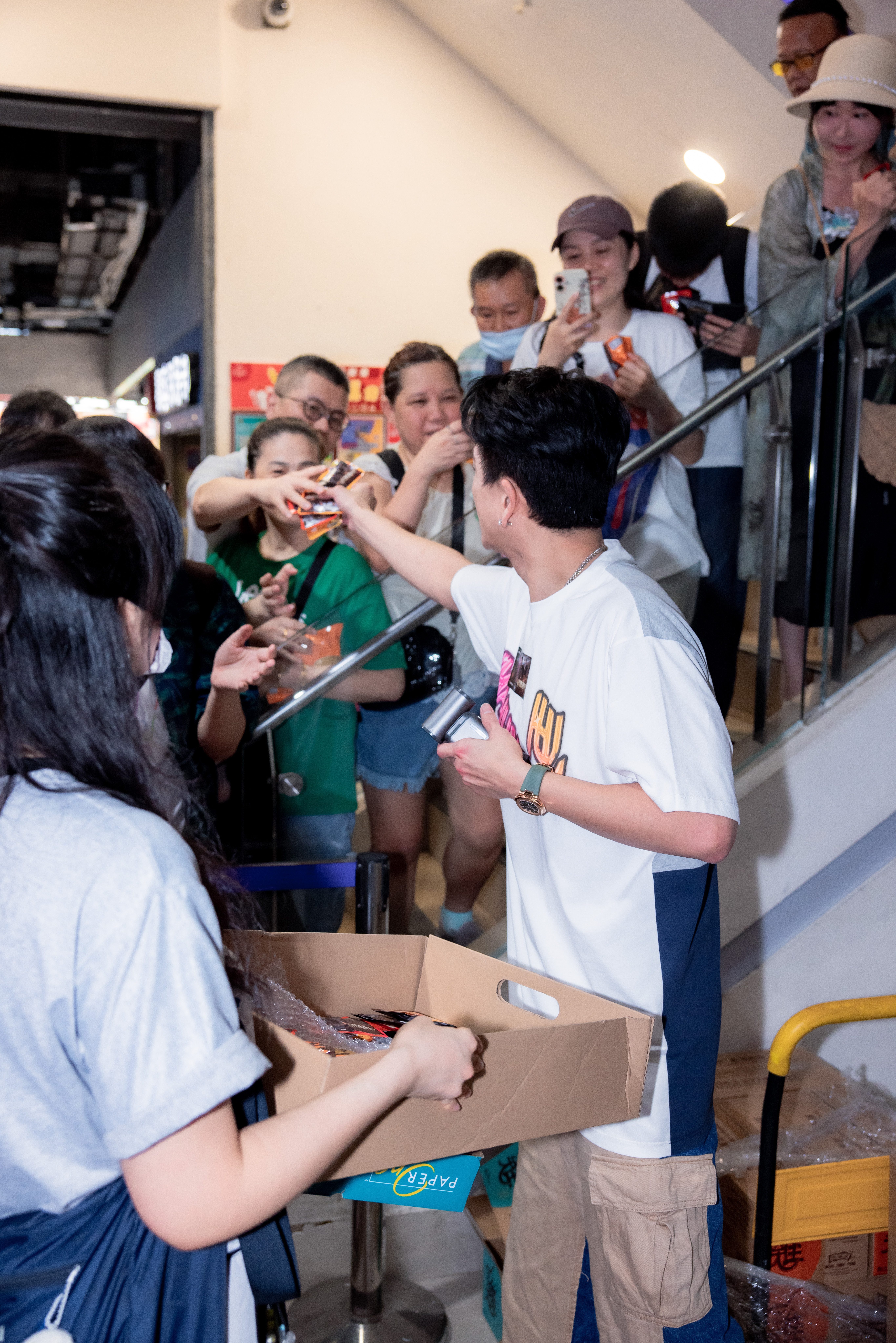 至於壓軸出場之Bosco、蔡潔與丁子朗(丁丁),一眾粉絲見到偶像Bosco現身,尖叫聲不絕,將快閃活動氣氛推向高峰,一向愛惜觀眾同粉絲的Bosco立即化身「送禮大使」,落力大派禮物,見到婆婆與手抱小孩的媽媽粉絲就大派double湯包與蛋卷,還細心的將禮物放到她們的手挽袋內,又貼心的叫她們慢慢行。當上層粉絲大叫黃宗澤好靚仔時,他又搞笑的回應:「我唔係黃宗澤,我係吳卓羲呀!」氹到大家好開心。雖然Bosco派禮物派到身水身汗,但一點也不介意,完全被粉絲熱情溶化了,而蔡潔與丁丁更嘗試突破場地界限,走到街市大派禮物,但丁丁一動身已被粉絲擠到寸步難行,蔡潔就成功突破重圍,將禮物派到街市檔主手上,令到全個街市都好熱鬧。