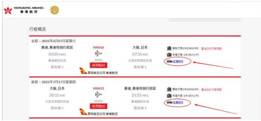 第一步:旅客在香港航空官方渠道成功購買大阪-香港/香港-大阪單程或來回機票