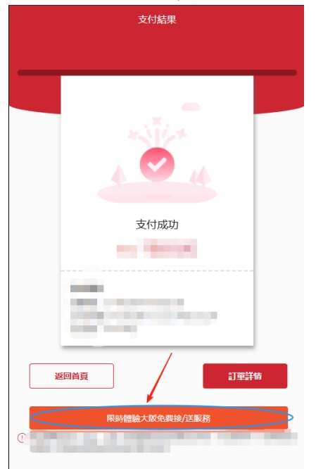 第二步:在付款成功頁面會顯示下圖中接送車預約按鈕