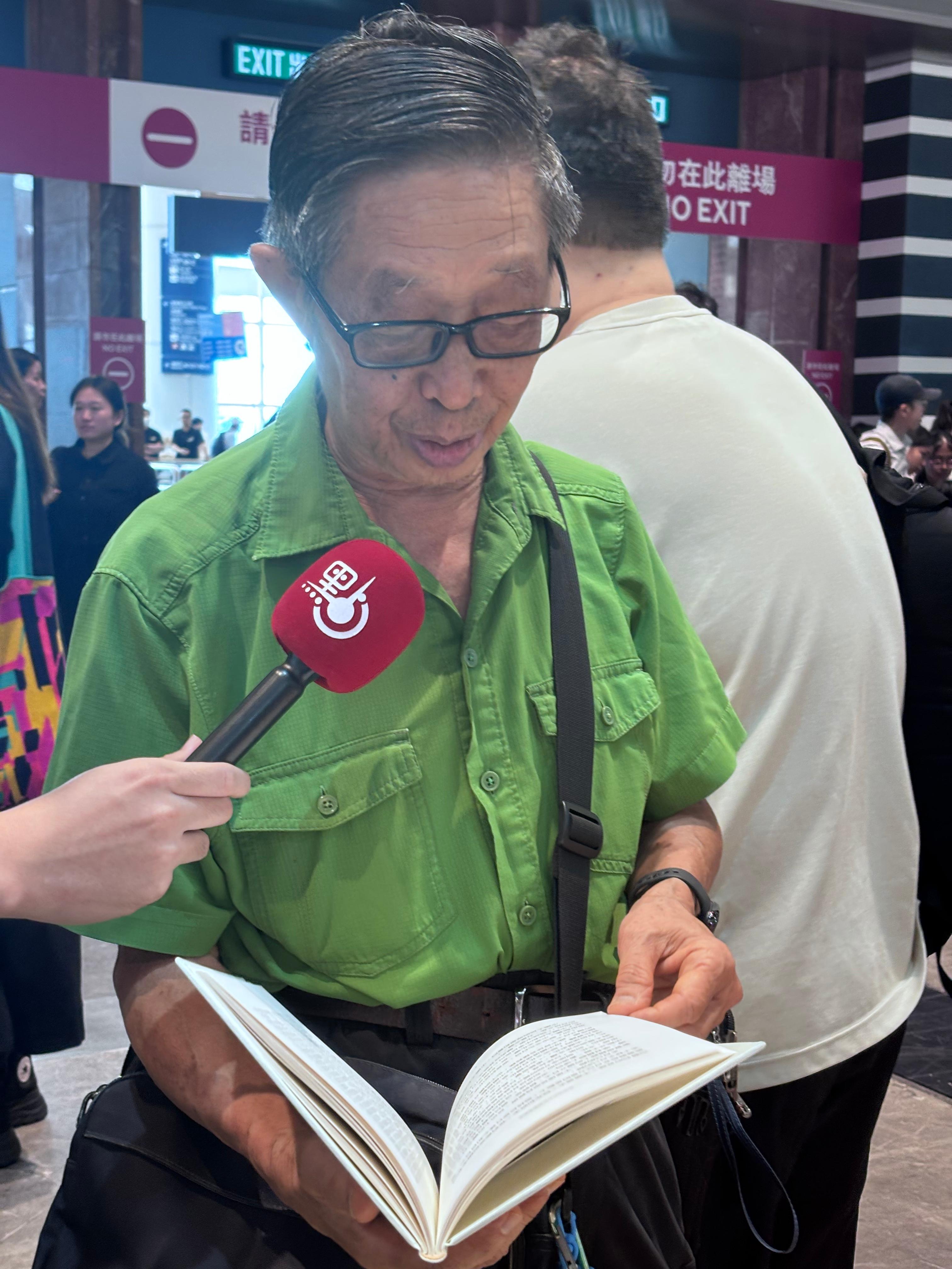 市民吳先生表示,今天是來書展第一天,有購買的打算。他認為習近平主席著作內容很好,掃二維碼之後有普通話講解,自己用手機試了試,認為可以用這種方式來學習普通話。