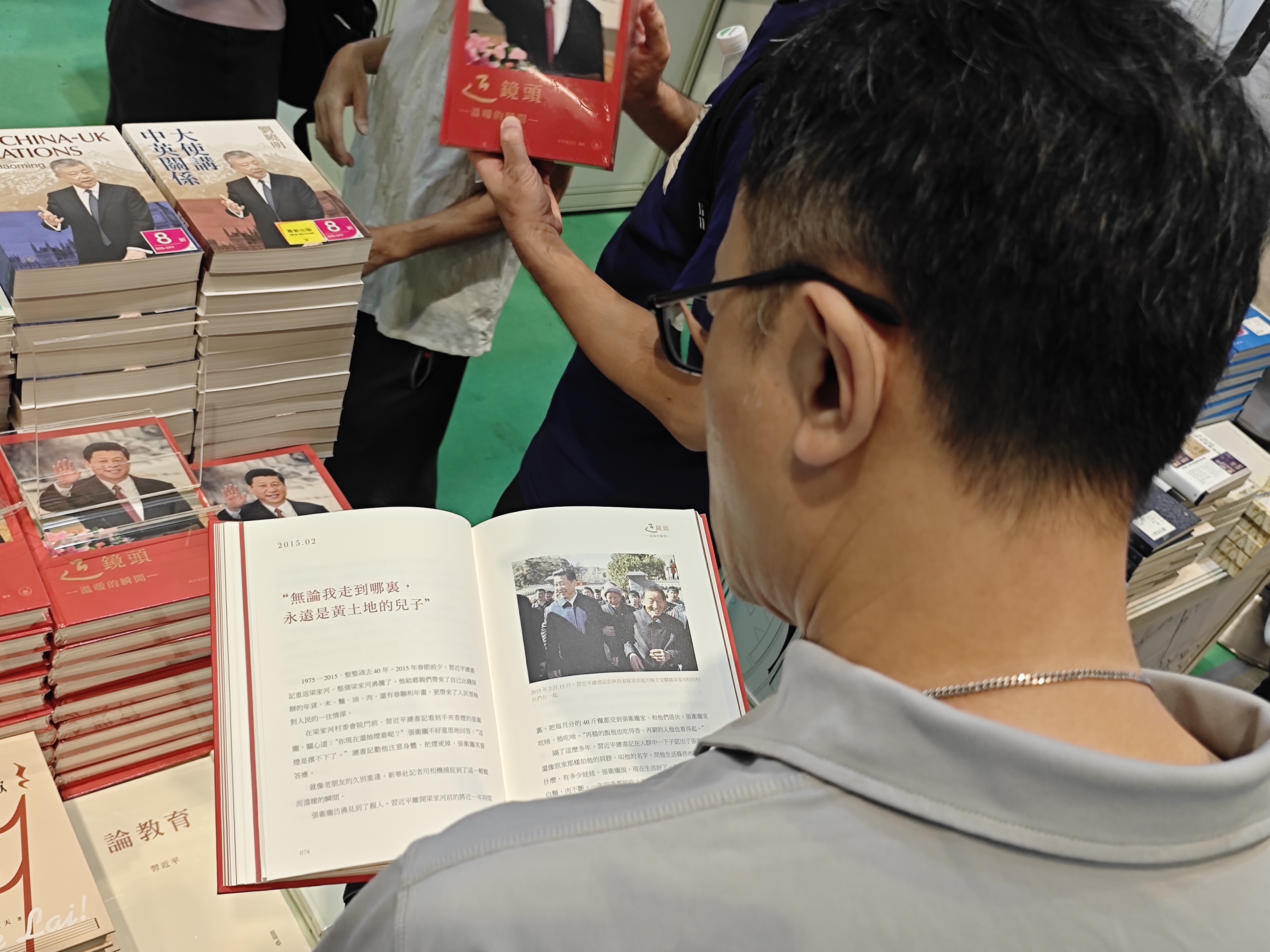 在三聯書店攤位,不時有市民認真翻閱習近平主席著作。市民楊先生接受點新聞採訪時表示,自己在報紙上了解到書展消息,入場第一眼就看到習主席的書,翻閱中學到很多,認為內容平常在報紙看不到,計劃購買。
