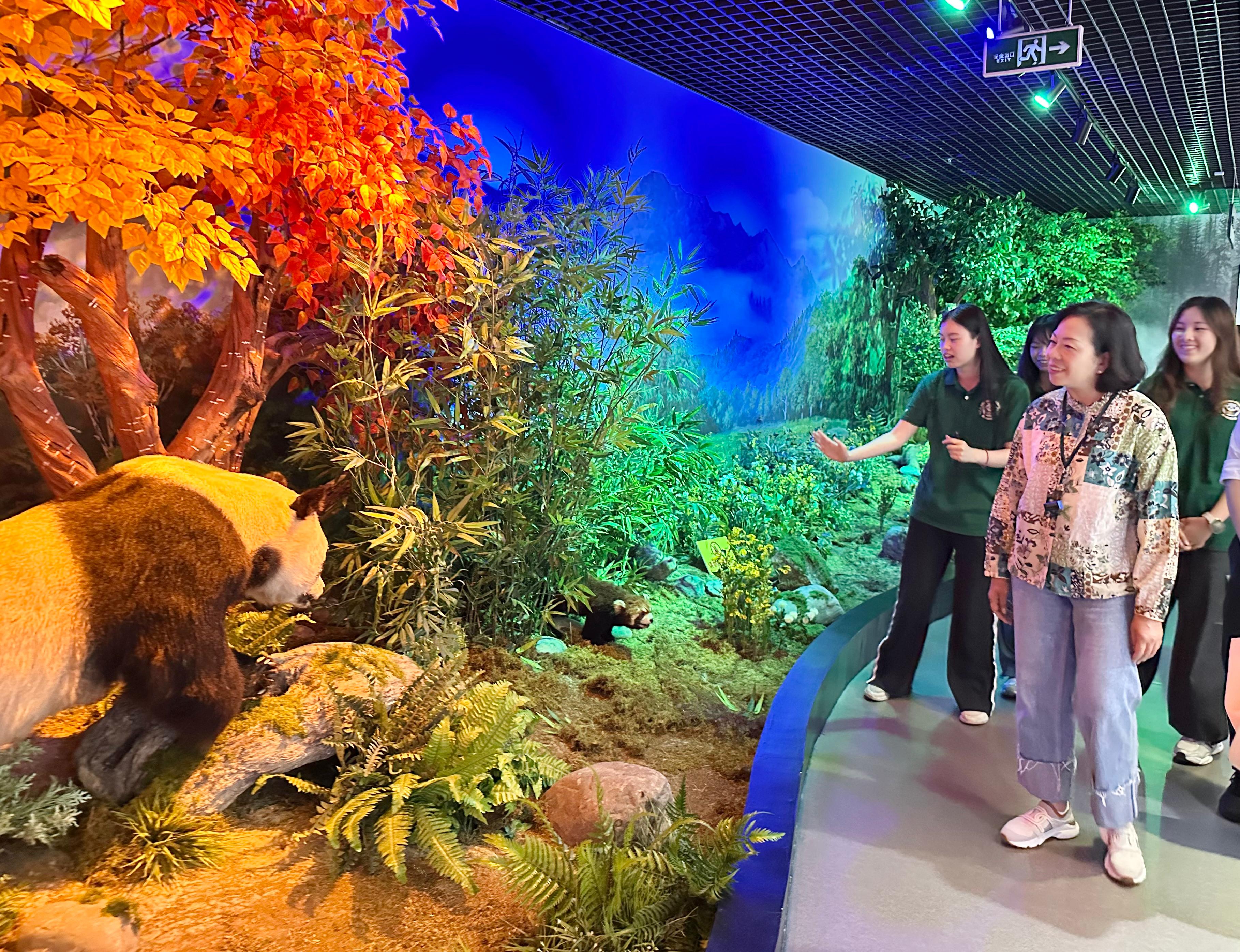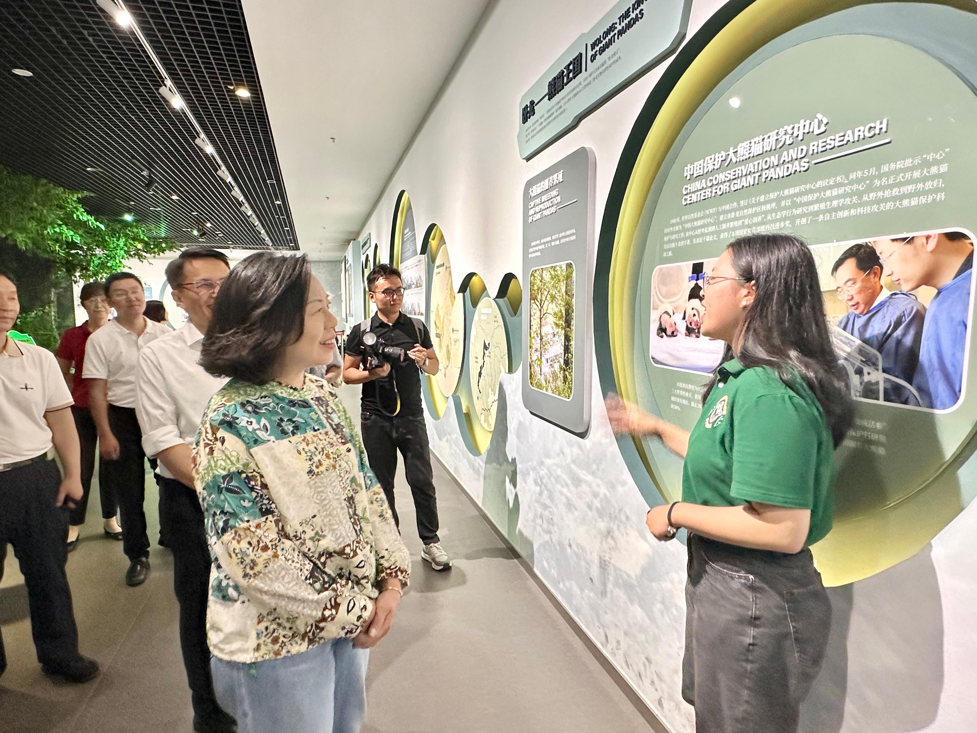麥美娟早上前往中國大熊貓保護研究中心神樹坪基地,與參加實習計劃的香港青年一起參觀香港援建大熊貓中心的設施和熊貓基地,聽取擔任講解員的實習生悉心介紹有關自然保育、護理和飼養大熊貓方面的工作。麥美娟隨後前往大熊貓國家公園臥龍自然博物館,聽取青年實習生介紹臥龍國家級自然保護區和自然生態保育的工作,並分享實習青年的工作體驗。