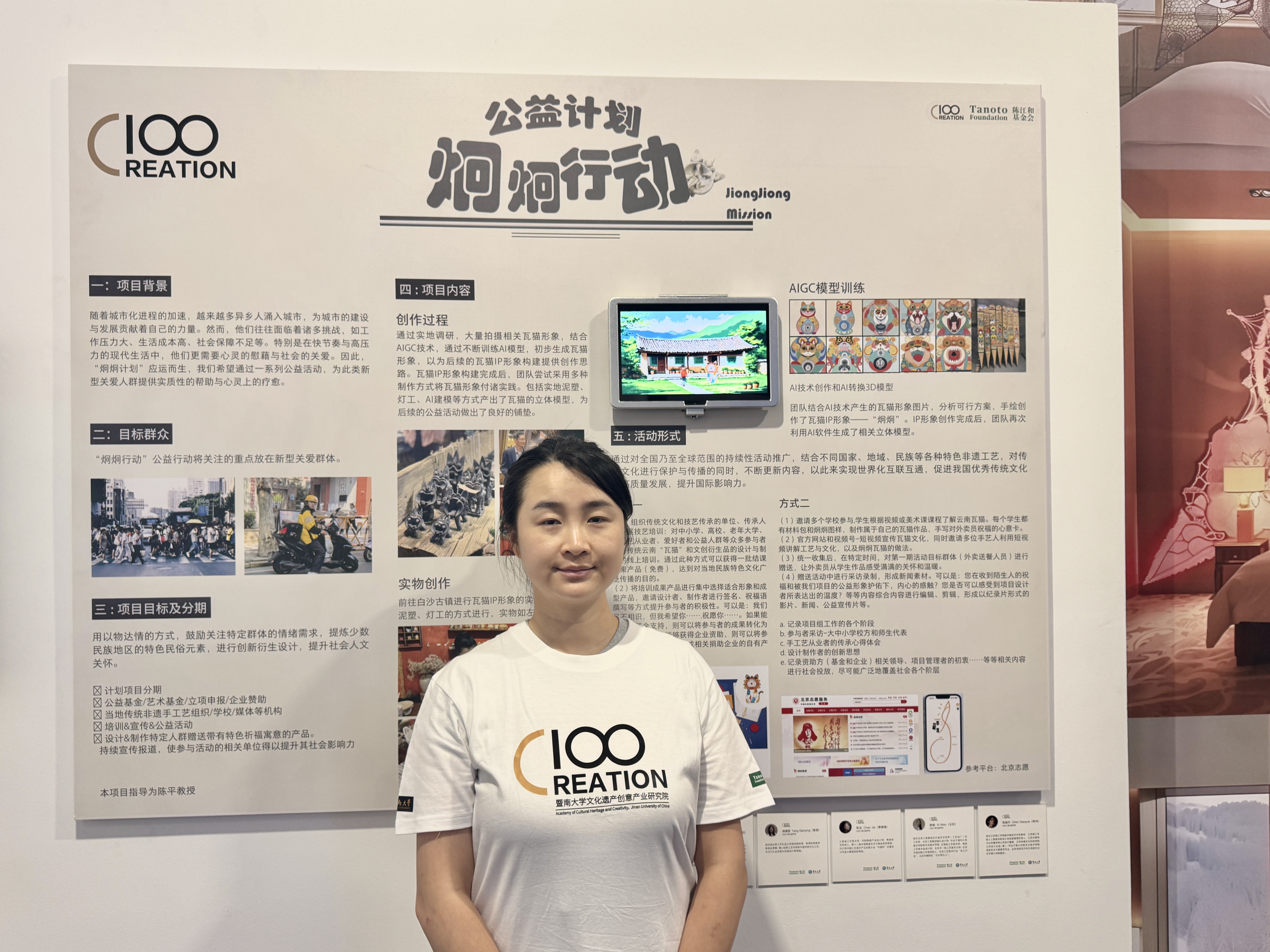 來自「炯炯行動」小組的陳曉月介紹了他們圍繞雲南傳統民俗「瓦貓」開發的文化IP項目。「瓦貓是雲南古鎮屋檐上的守護形象,我們從中提煉出守護家庭、驅邪納福的概念。「 他們希望通過這個IP,將守護的理念延伸到現代生活中,將更多關注放在外賣小哥或在異地生活的人群上。