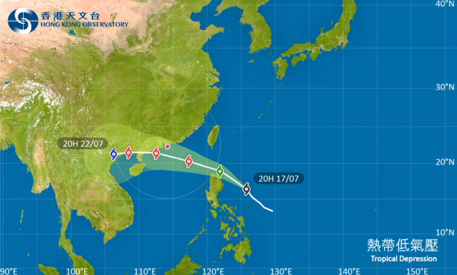 天文台表示,按照現時預測,位於菲律賓以東的熱帶氣旋會在明晚至周六初時進入本港800公里範圍,天文台屆時會發出一號戒備信號。預料該熱帶氣旋隨後會逐步增強並靠近廣東西部沿岸一帶,與其相關的強風區及外圍雨帶亦會逐漸影響本港,周六稍後至下周一會有狂風大驟雨及雷暴,風勢頗大,海有大浪及湧浪,市民應遠離岸邊及停止水上活動。