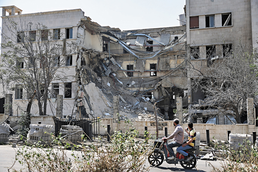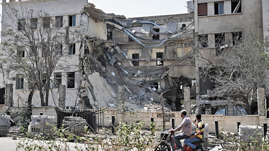 大馬士革周三遭遇以軍空襲,當地電視台現場直播畫面顯示,國防部總部大樓被導彈擊中,冒出大量黑煙,爆炸巨響令附近途人紛紛驚叫走避。遇襲的國防部大樓部分建築物結構被炸毀,爆炸碎片擊中多人,有血流披面的途人在救護人員幫助下匆忙送院,現場一片狼藉。