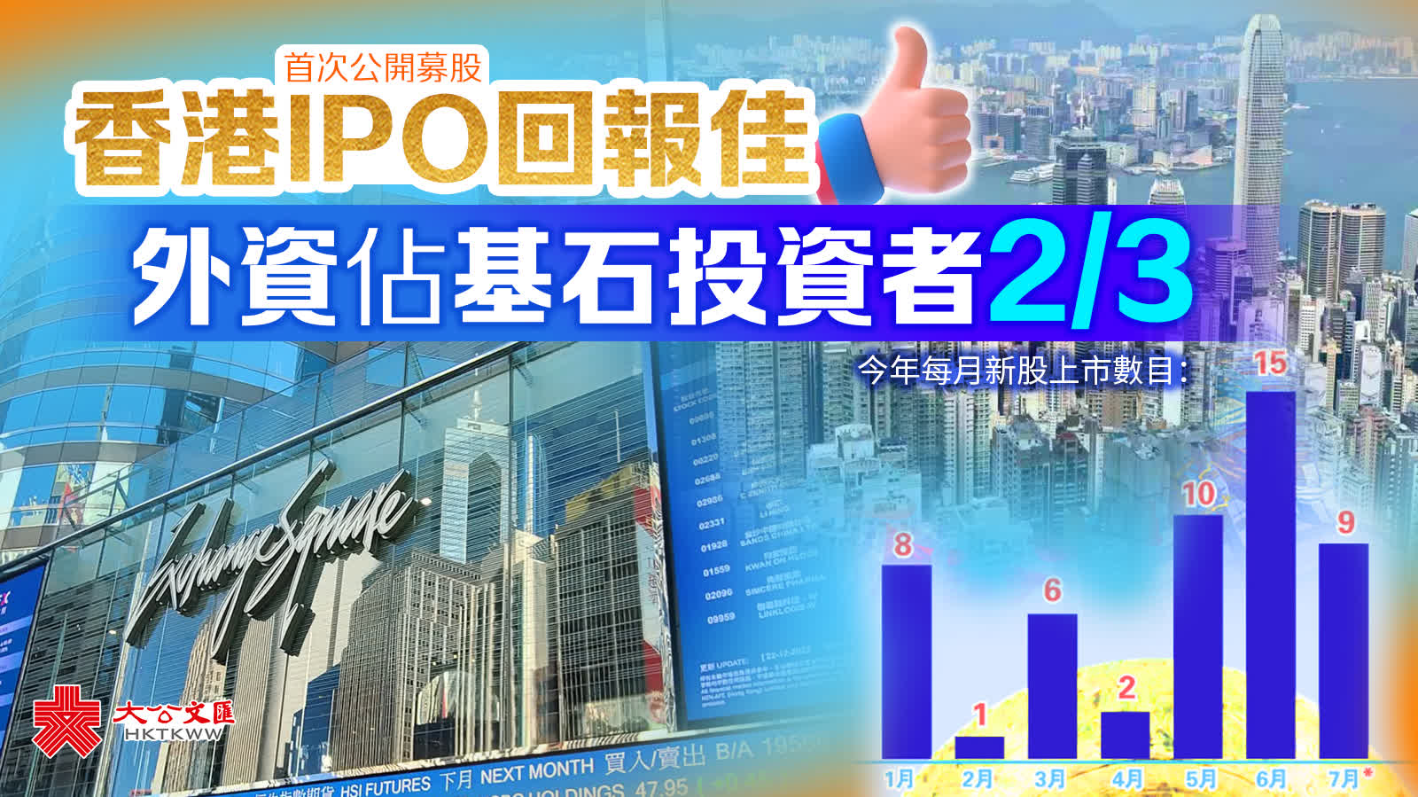 (大公報 記者 周寶森)香港新股市場暢旺,上半年IPO集資額1071億元稱冠全球,優質企業紛紛來港上市,吸引境外機構投資者關注。高盛統計發現,年初至今共有51家公司上市,融資額合共1240億元,其間基石投資者貢獻IPO融資額42%;在眾多基石投資者中,三分之二屬於海外投資者。