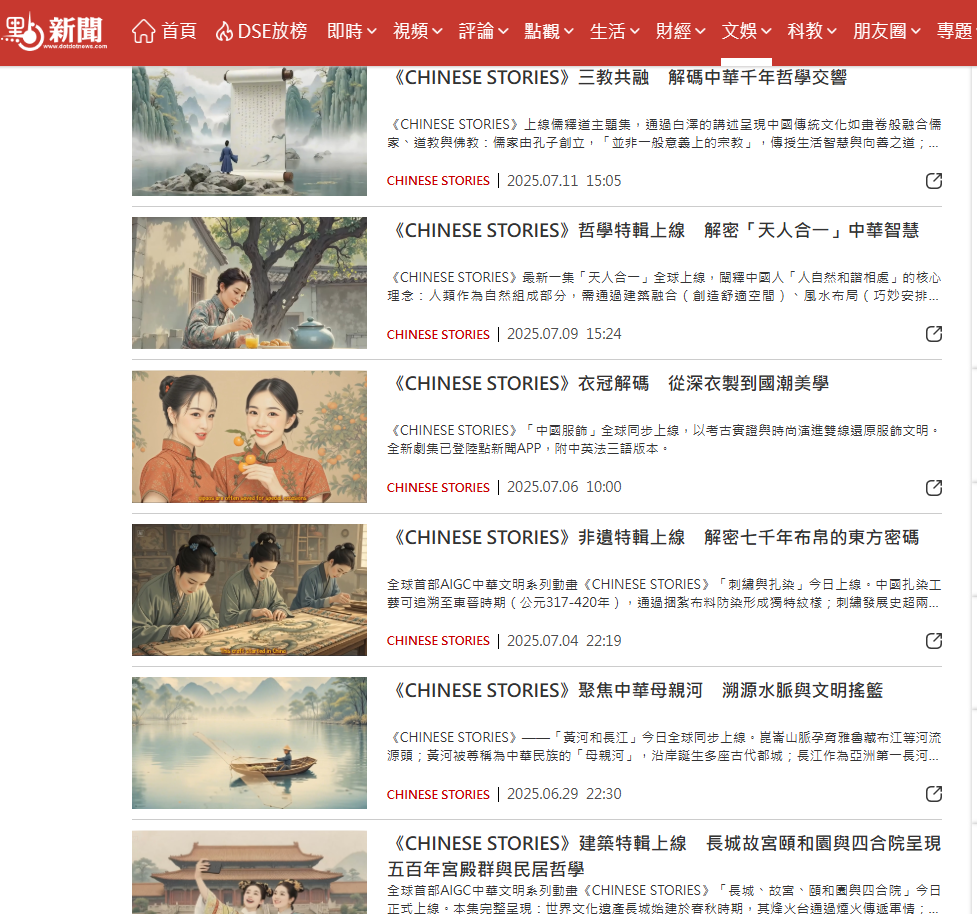 (大公文匯全媒體 記者 劉妍伶)近日,教育局更新「國家安全教育資源網頁」相關網站及參考書目,納入由黃廷方慈善基金、辰瑾閣國際智庫、香港大公文匯傳媒集團聯合製作推出的全球首部AIGC中華文明系列動畫《CHINESE STORIES》。