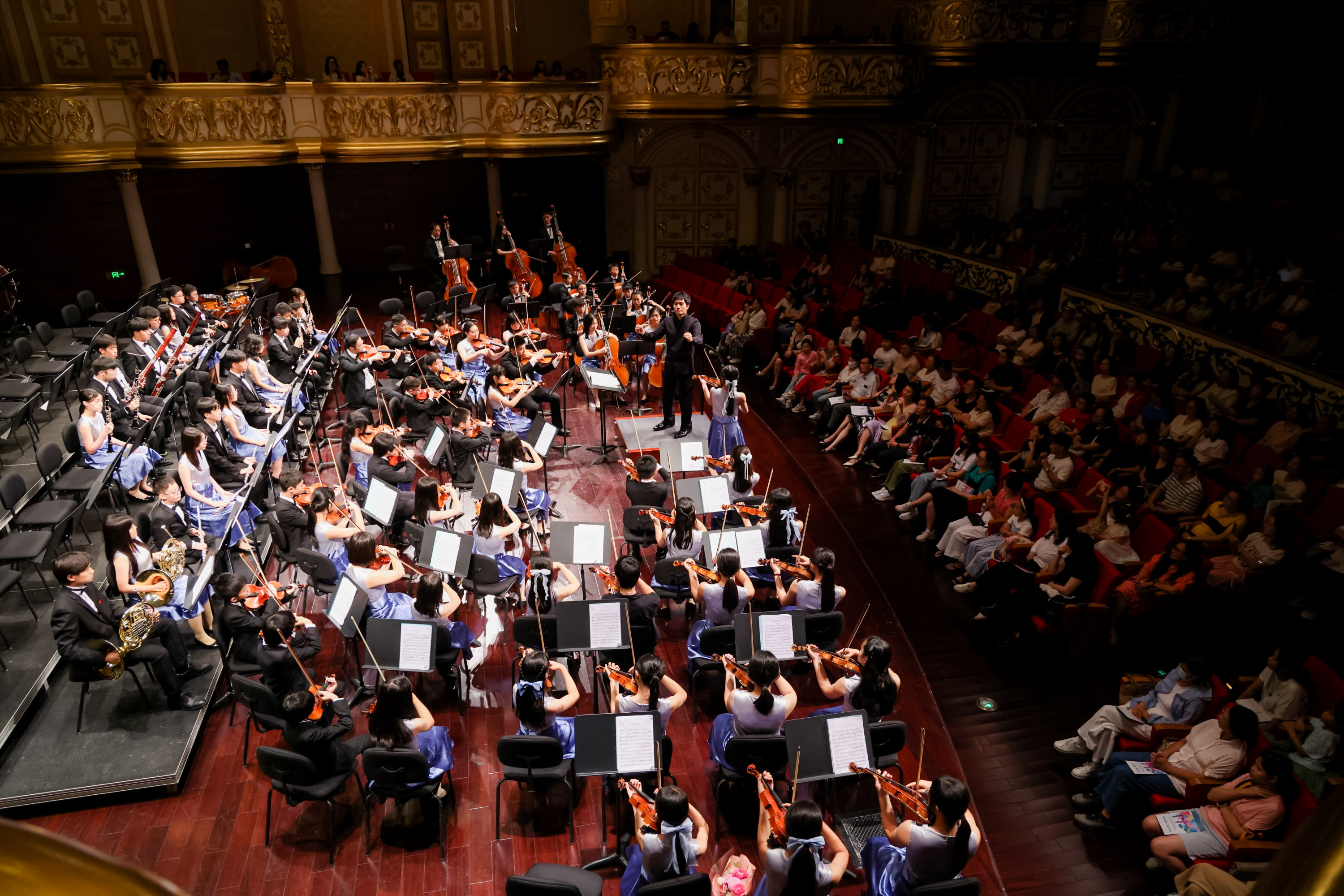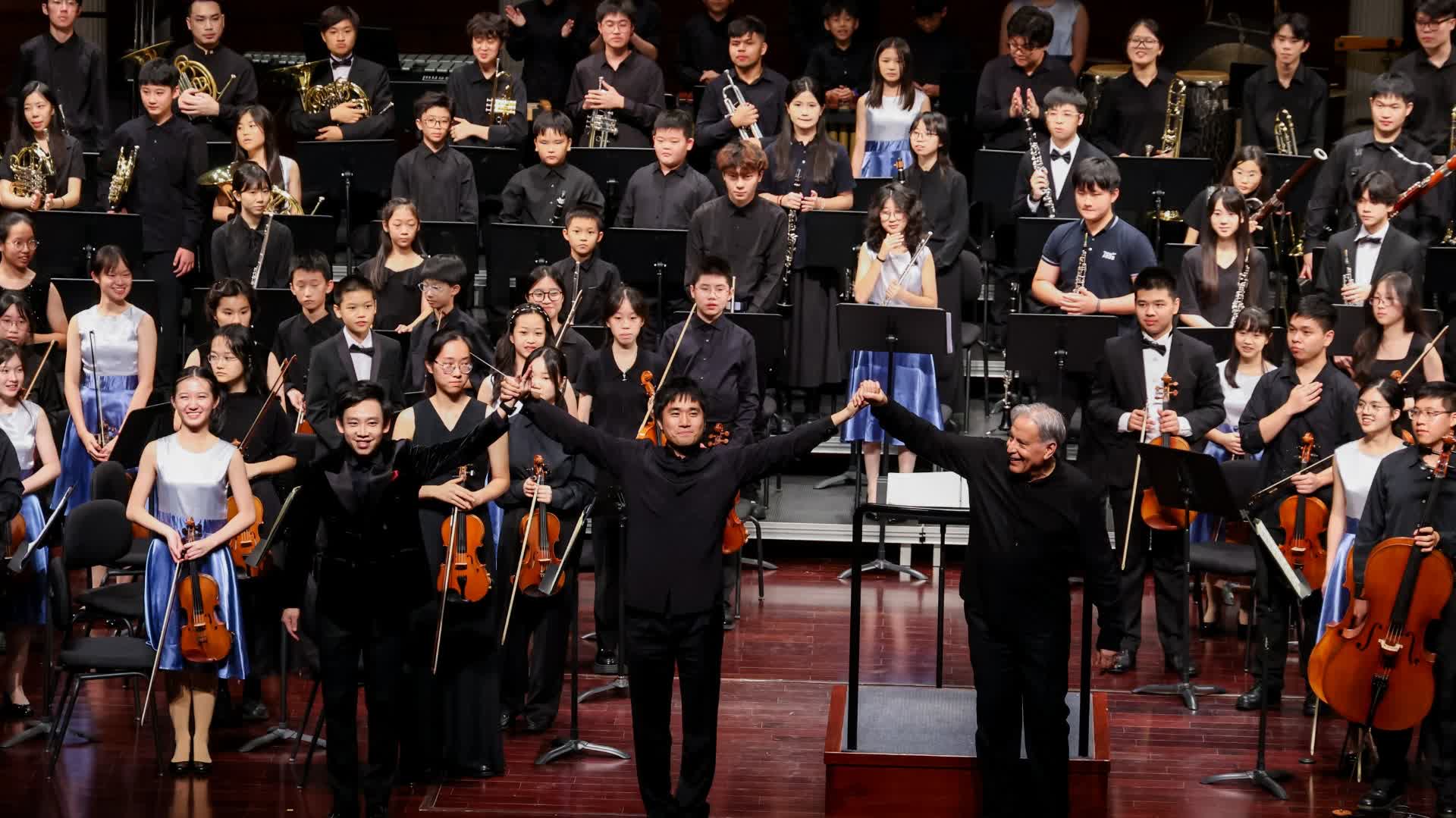 香港兒童交響樂團則精彩呈現了柴可夫斯基《D大調小提琴協奏曲》。小提琴獨奏者以精湛技藝詮釋了第一樂章「適中的快板」,琴弦上流淌的斯拉夫風情令人陶醉。而珠海青少年管弦樂團帶來了耳目一新的創意改編。韋伯《歌劇魅影》選段的交響化改編,讓經典音樂劇煥發新聲;巴西名曲《雀鳥》的歡快節奏,展現了樂團對多元音樂風格的駕馭能力。