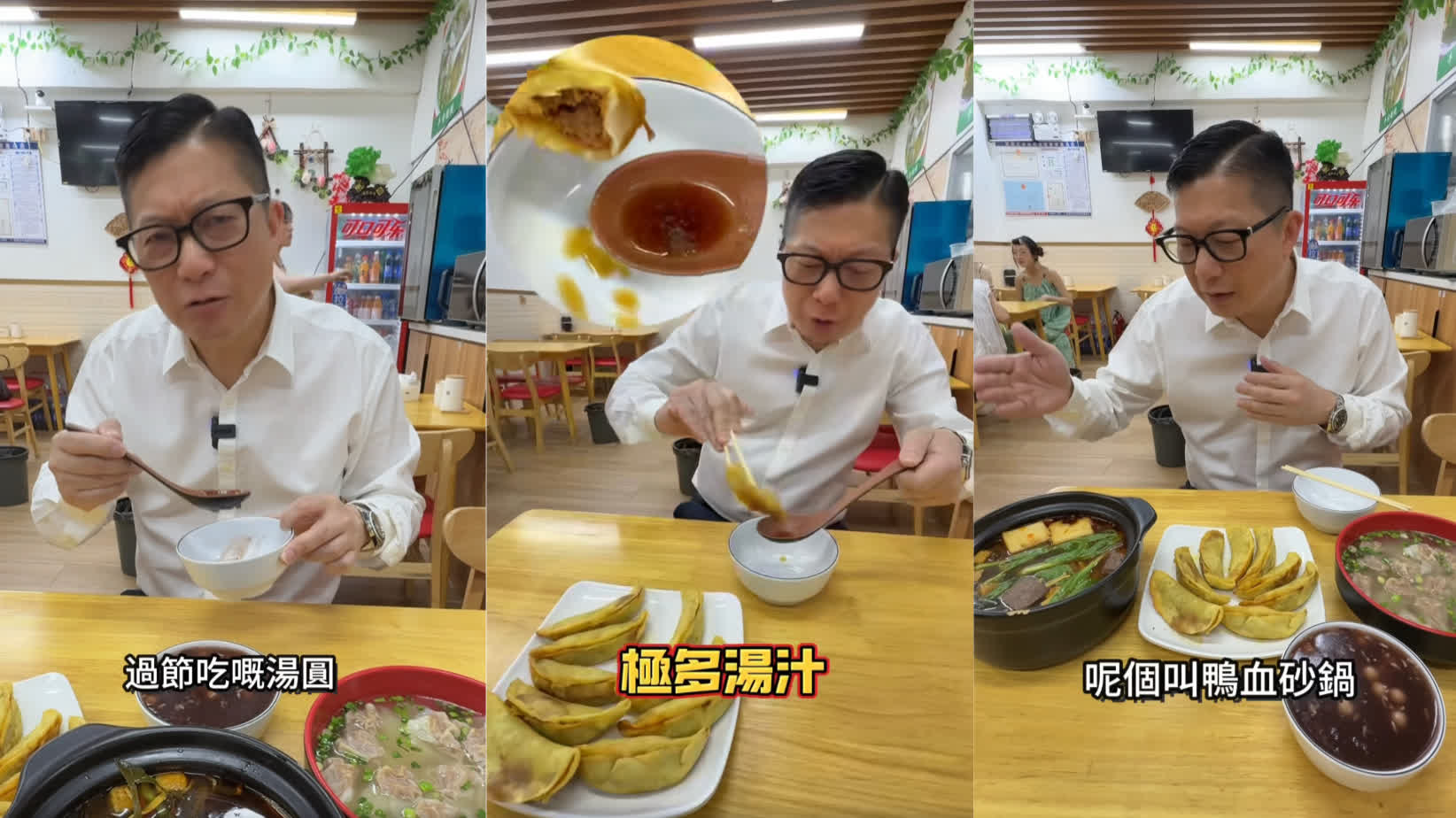 鄧炳強表示,今早嘗試了南京地道美食牛肉鍋貼、煮餛飩、赤豆湯圓和鴨血粉絲湯,坦言這與港式早餐是截然不同的文化體驗。