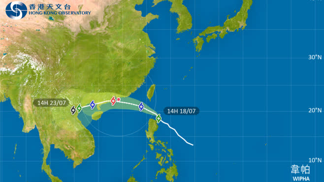 大公文匯全媒體報道,天文台表示,按照現時預測,熱帶風暴韋帕會在今(18日)晚午夜前後進入本港800公里範圍,天文台屆時會發出一號戒備信號,預料韋帕會在明日及星期日逐步增強並靠近珠江口一帶,本港明日稍後風勢逐漸增強,雨勢頗大及有狂風雷暴,天文台會考慮在明日日間發出三號強風信號。