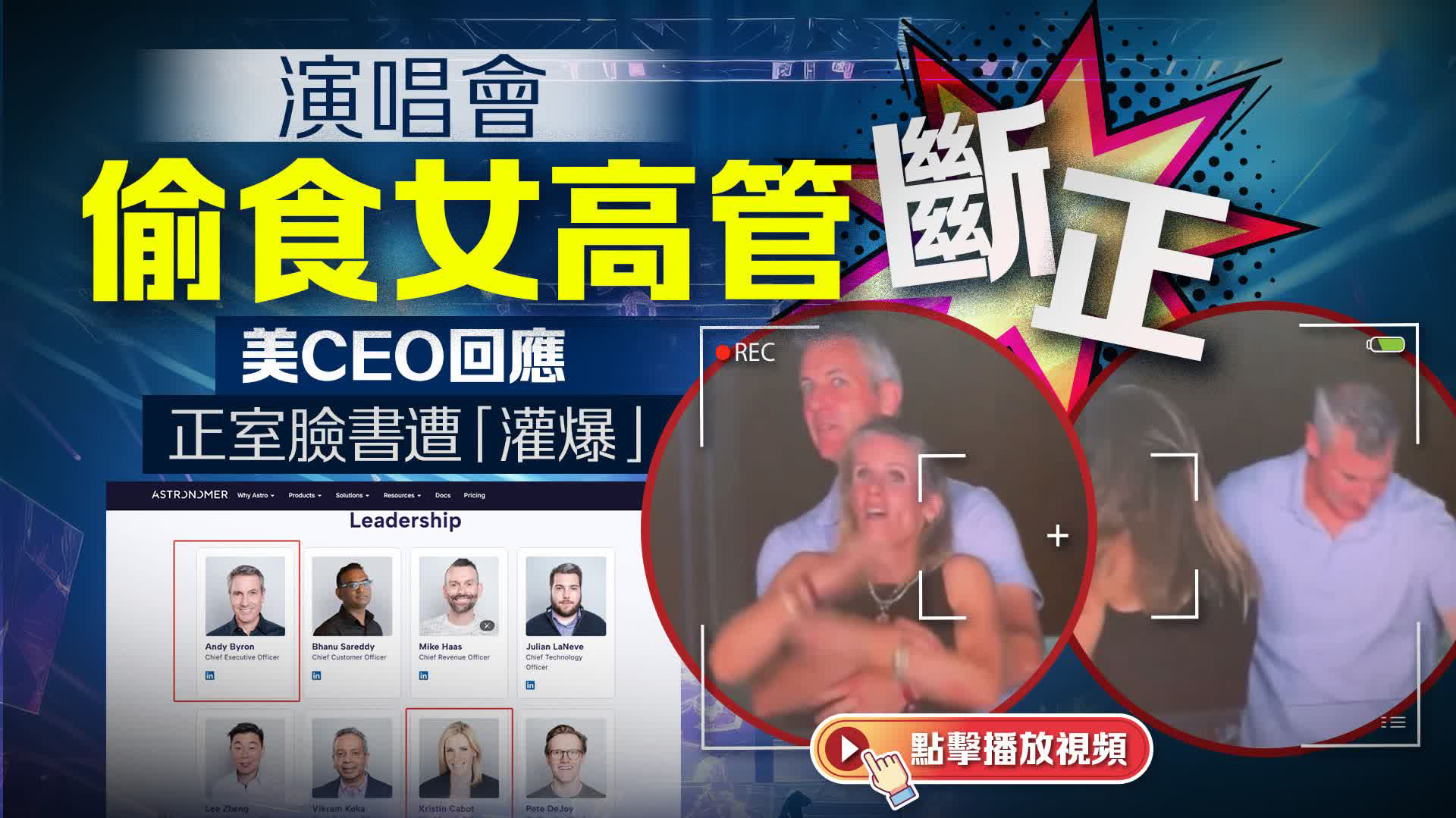 大公文匯全媒體報道,英國流行搖滾樂團Coldplay在美國波士頓舉行演唱會,大會在「Kiss Cam」環節,捕捉到Astronomer行政總裁Andy Byron從後擁抱人事總監(CPO)Kristin Cabot畫面,兩人迅速分開並避開鏡頭。兩人令人意外的反應,迅速在網絡社交平台熱傳,並被揭露真正身份。