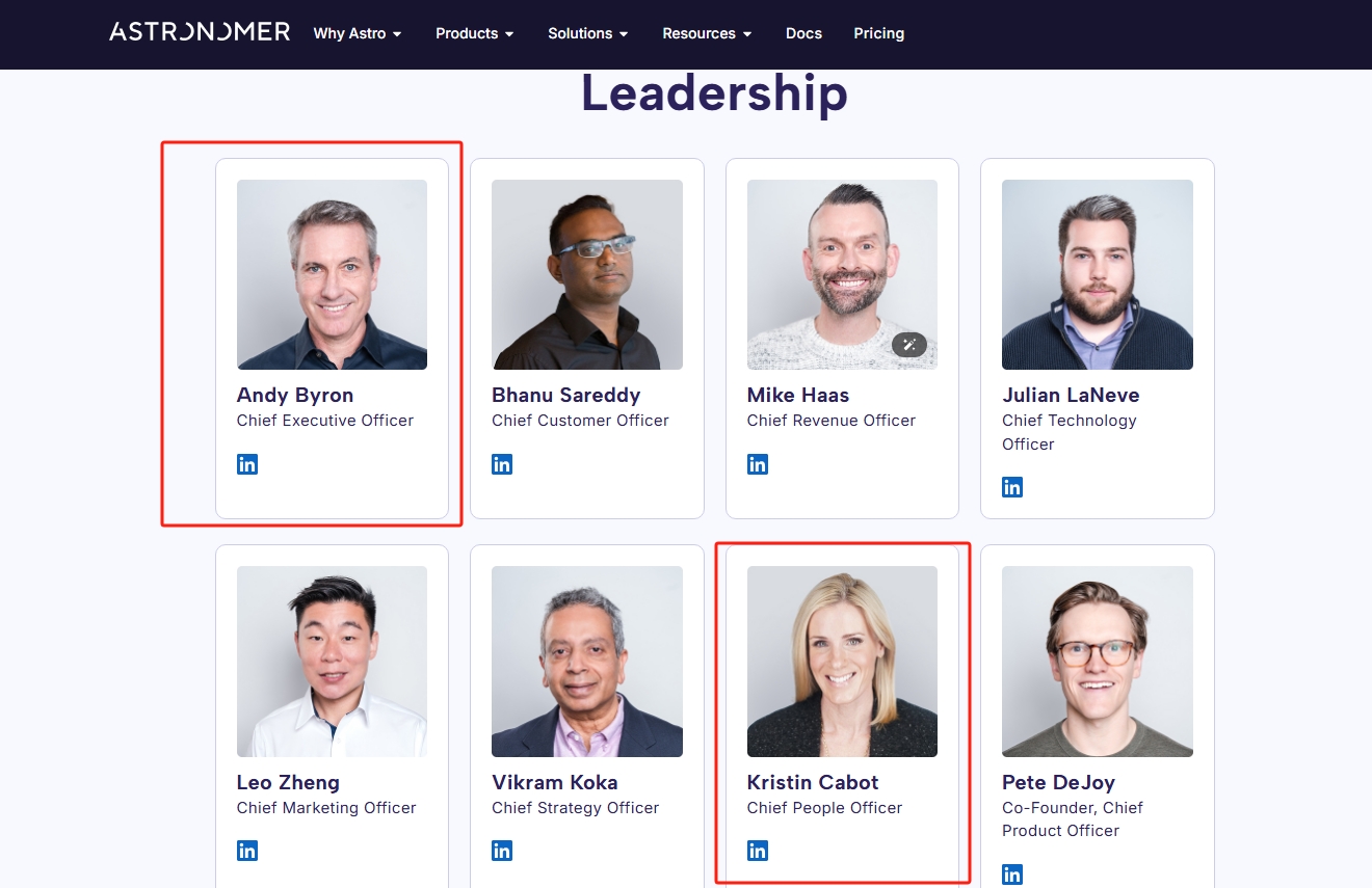 據報道,Byron自2023年7月起接掌Astronomer,與妻子育有兩個孩子,而事件另一主角Cabot則是Astronomer的人事總監,於2024年11月加入公司,同樣已婚。事件曝光後Cabot前夫已關閉所有社交平台,而Byron妻子的臉書則因遭大量網友留言灌爆,目前已無法找到。