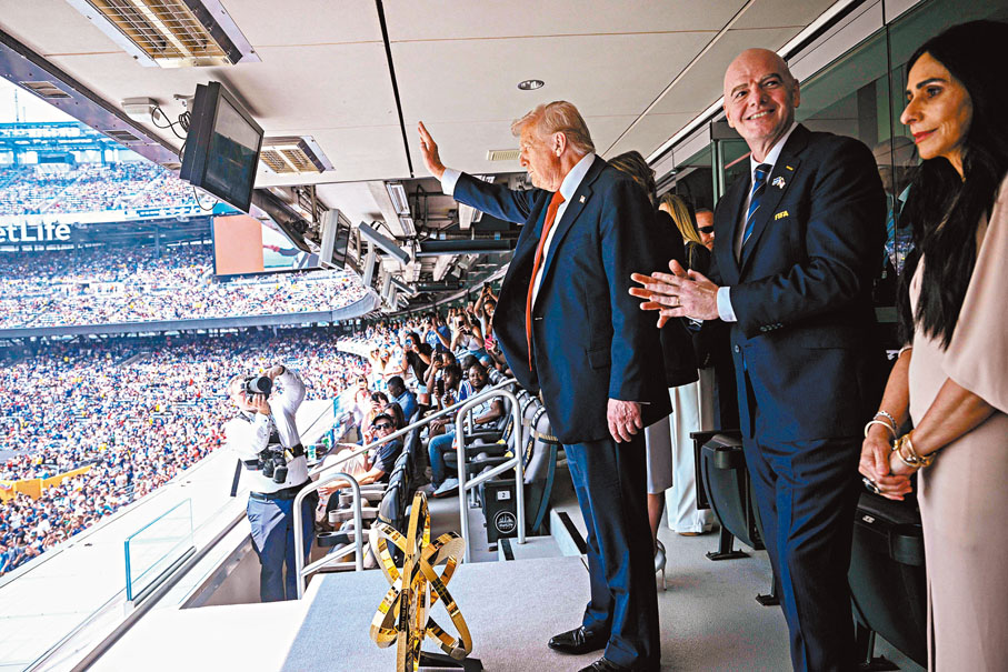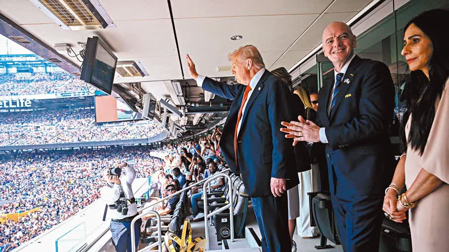 特朗普周日在新澤西州體育場觀看了世冠盃決賽,當時有照片捕捉到他的腳踝明顯腫脹,這使得特朗普的健康狀況遭受質疑。特朗普其後受訪時,又有攝影機拍攝到他手背上有瘀青,他還塗抹了遮瑕膏以掩飾這一痕跡。