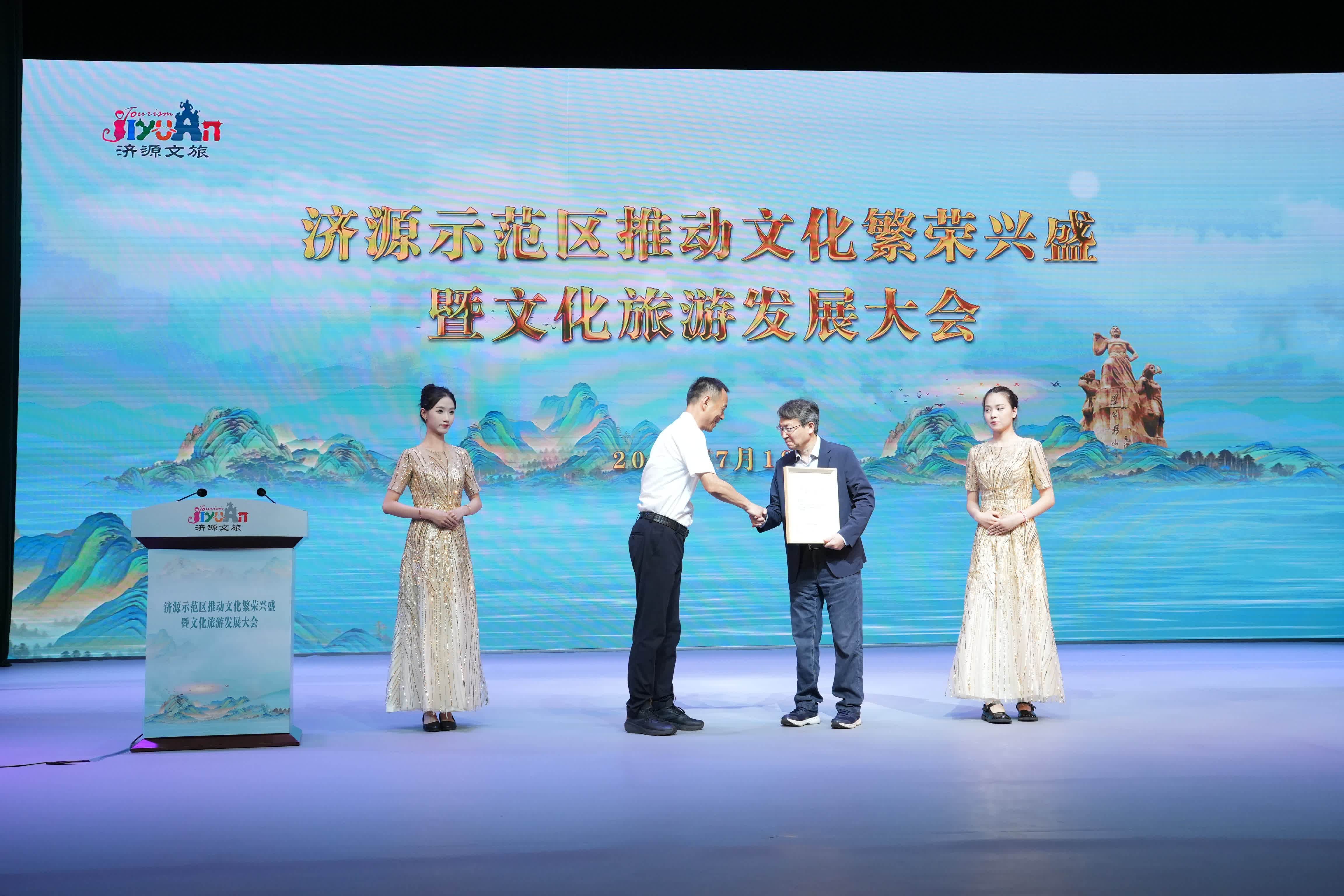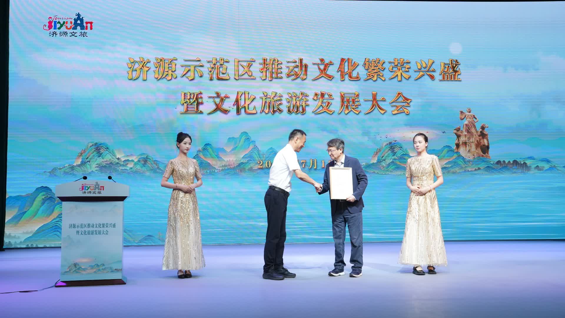 7月18日,示範區推動文化繁榮興盛暨文化旅遊發展大會在文化城召開,動員示範區上下堅定信心、創新思路、發揮優勢,共同推動文化繁榮興盛,真正把文旅產業打造成為支柱產業、民生產業、幸福產業。示範區黨工委書記、市委書記徐衣顯出席大會並講話。示範區管委會主任、市長秦保建向李洱頒發「濟源公益文化旅遊形象大使」證書。