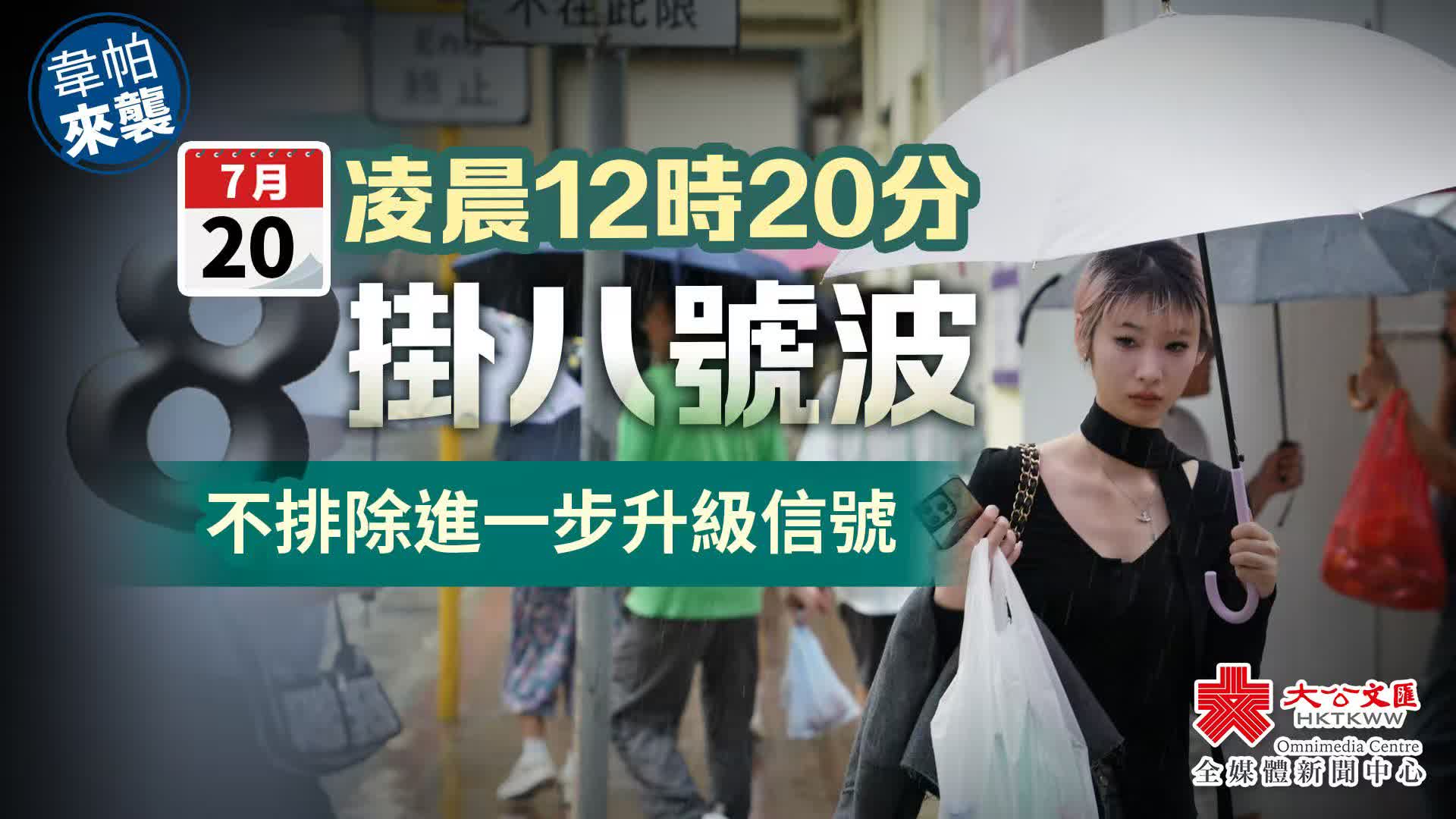 大公文匯全媒體報道,香港天文台今日(20日)凌晨12時20分發出八號熱帶氣旋警告信號,本港風勢將會增強。
