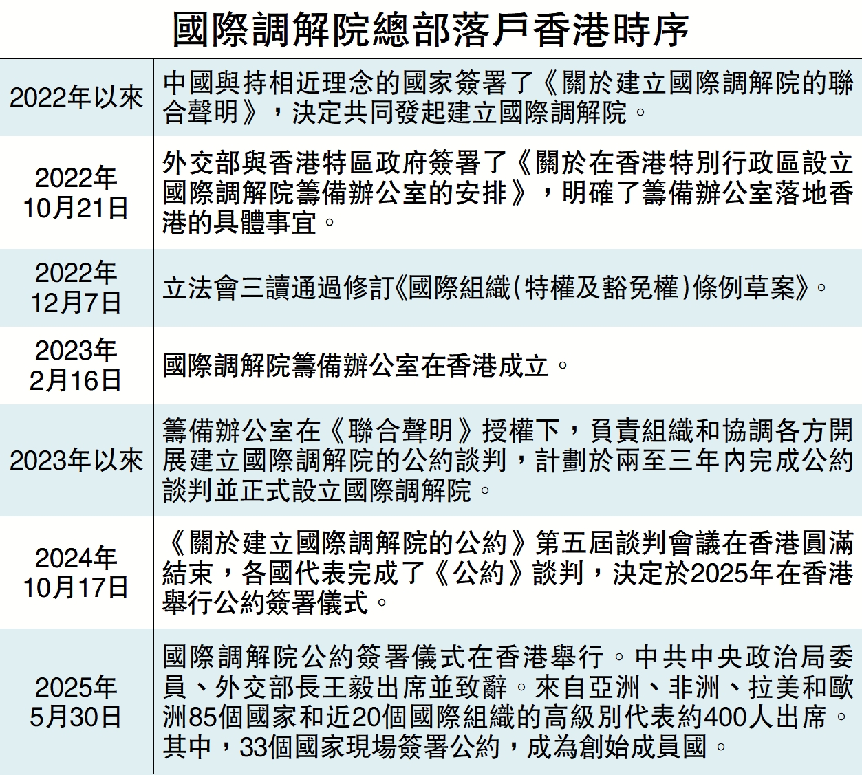 此外,香港特區律政司司長林定國在香港表示,國際調解院落戶香港,將進一步提升香港作為國際法律服務和爭議解決中心的地位。調解員要在法律、商業、工業或金融等專業領域具有公認的能力,他透露將設國家間爭議及一般商事爭議兩份調解員名冊。