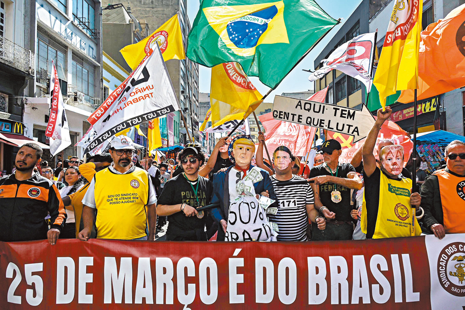 博爾索納羅因涉嫌在2022年大選失利後企圖政變,正遭受刑事指控。巴西最高法院上周五表示,博爾索納羅及其兒子愛德華多與美國國務院官員秘密會晤,試圖配合美國對巴西徵收高額「對等關稅」,明顯冒犯並威脅巴西主權。依照限制措施,博爾索納羅必須戴電子腳鐐,在周一至周五晚上7時至翌日早6時不得外出,周末及節假日需全天居家軟禁。法院亦禁止博爾索納羅與外國官員和外交官聯絡、不得使用社媒,限制他與兒子愛德華多接觸,防止他尋求庇護。警方還搜查博爾索納羅的住所,查獲1.4萬美元(約11萬港元)現金。