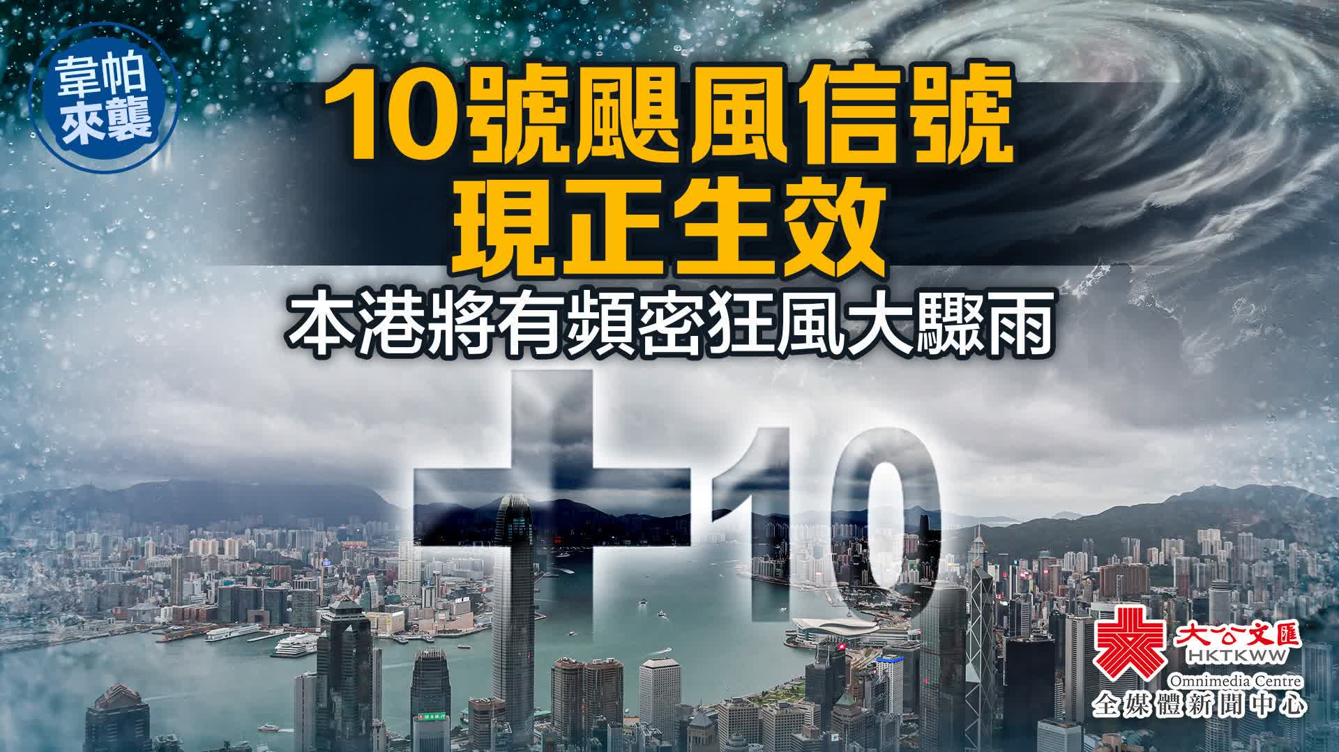 大公文匯全媒體報道,本港十號颶風信號正生效。天文台發布最新風暴消息指,預料十號颶風信號會至少維持至下午3時。