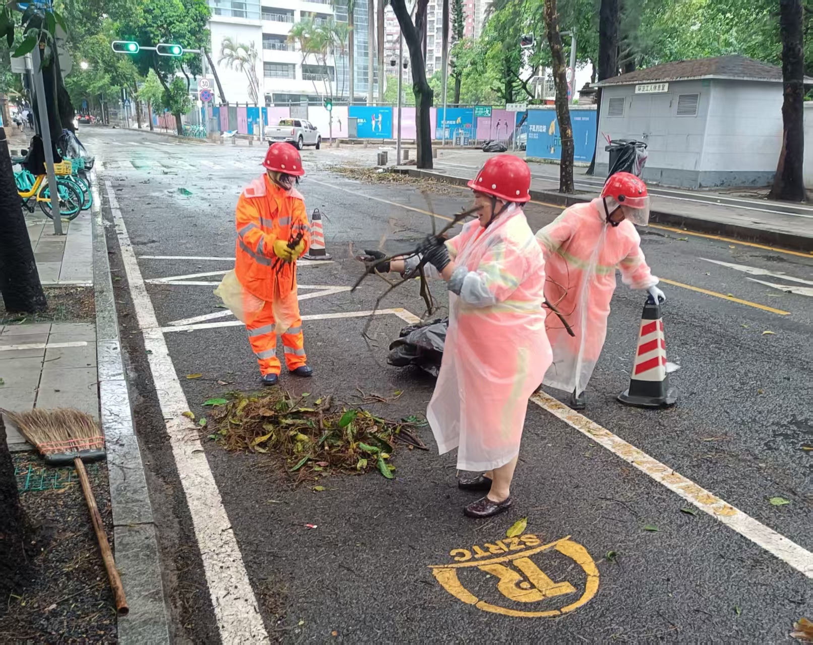 深圳市城市管理和綜合執法局組織各部門全力做好各項防禦措施,深圳市公園管理中心組織各市屬公園開啟颱風全面防禦工作,清理倒伏樹木,疏通低洼地帶排水系統,排查危險邊坡、擋土牆等區域。加強周末備勤力量,嚴格執行值班制度,投入多支應急救援隊伍,集結車輛和裝備,全力應對颱風。