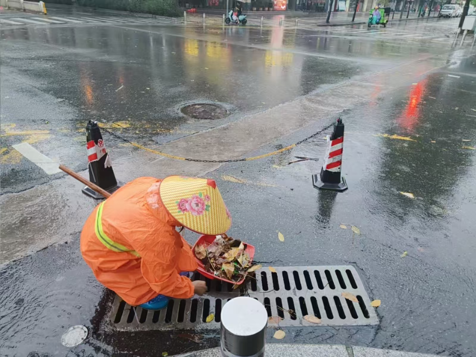 深圳市環衞部門組織各區巡查全市雨水篦子,清理垃圾雜物,聯動水務部門清掏堵塞雨水篦子。對垃圾填埋場排水溝、堆體壩體進行檢查,防範堆體滑坡風險,保障排水暢通和環衞領域安全。