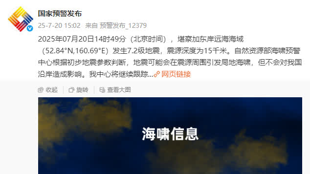 自然資源部海嘯預警中心根據初步地震參數判斷,地震可能會在震源周圍引發局地海嘯,但不會對我國沿岸造成影響。