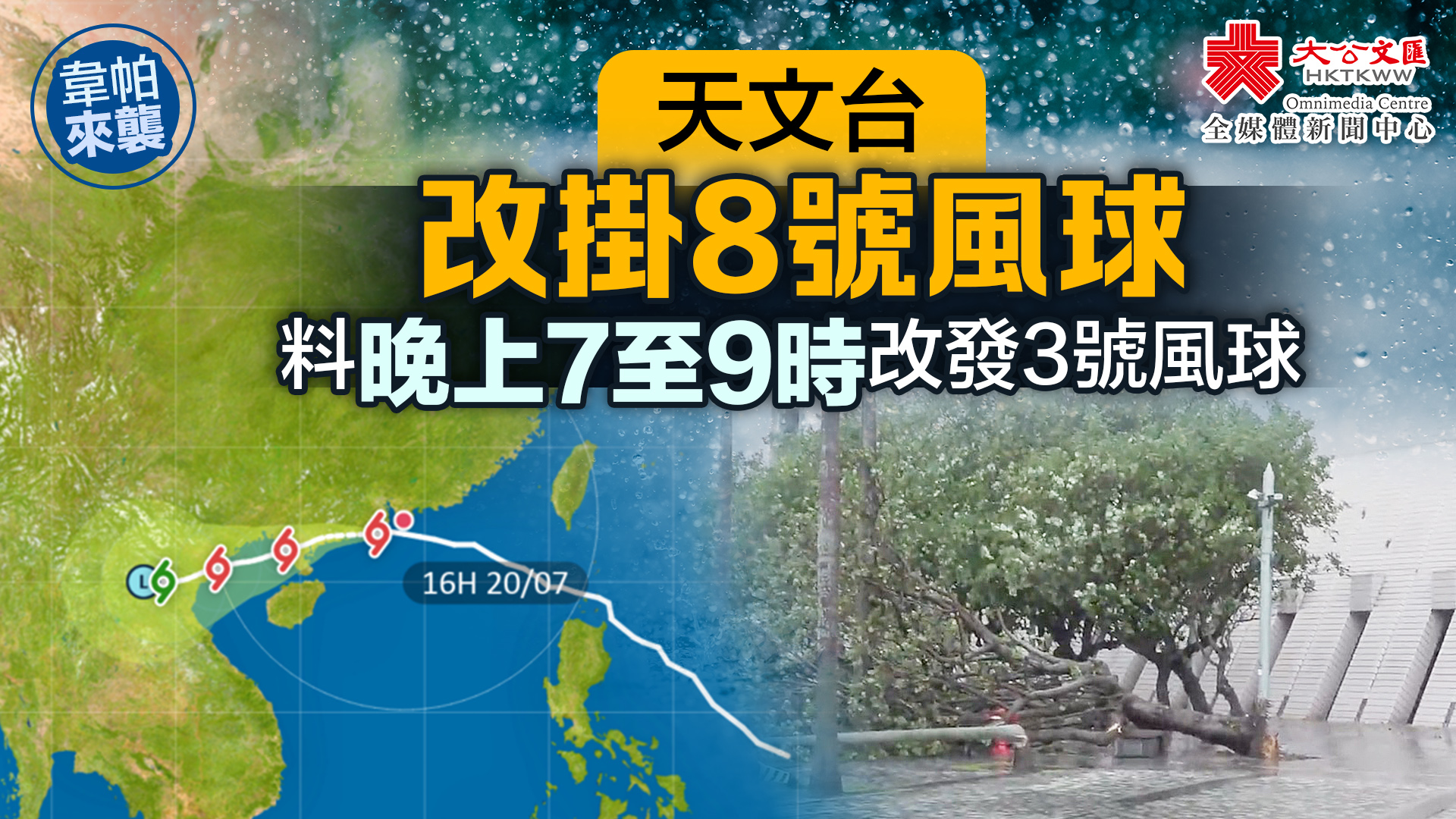 大公文匯全媒體報道,韋帕正逐漸遠離香港,而香港風力亦逐步減弱,天文台今日(20日)下午4時10分改發八號東南烈風或暴風信號。隨着風力進一步減弱,天文台會考慮在晚上7時至9時改發三號強風信號。