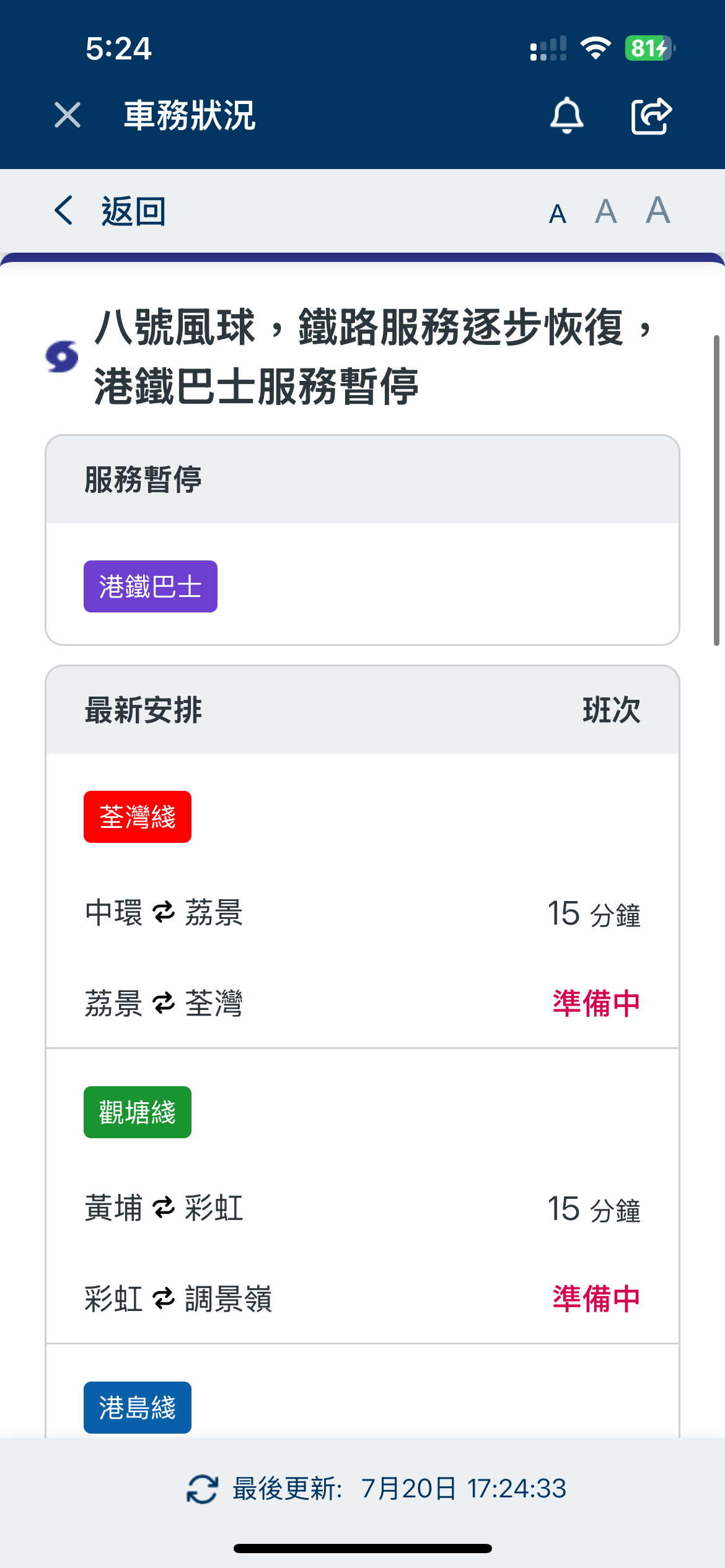 關鍵詞:天文台韋帕颱風港鐵交通