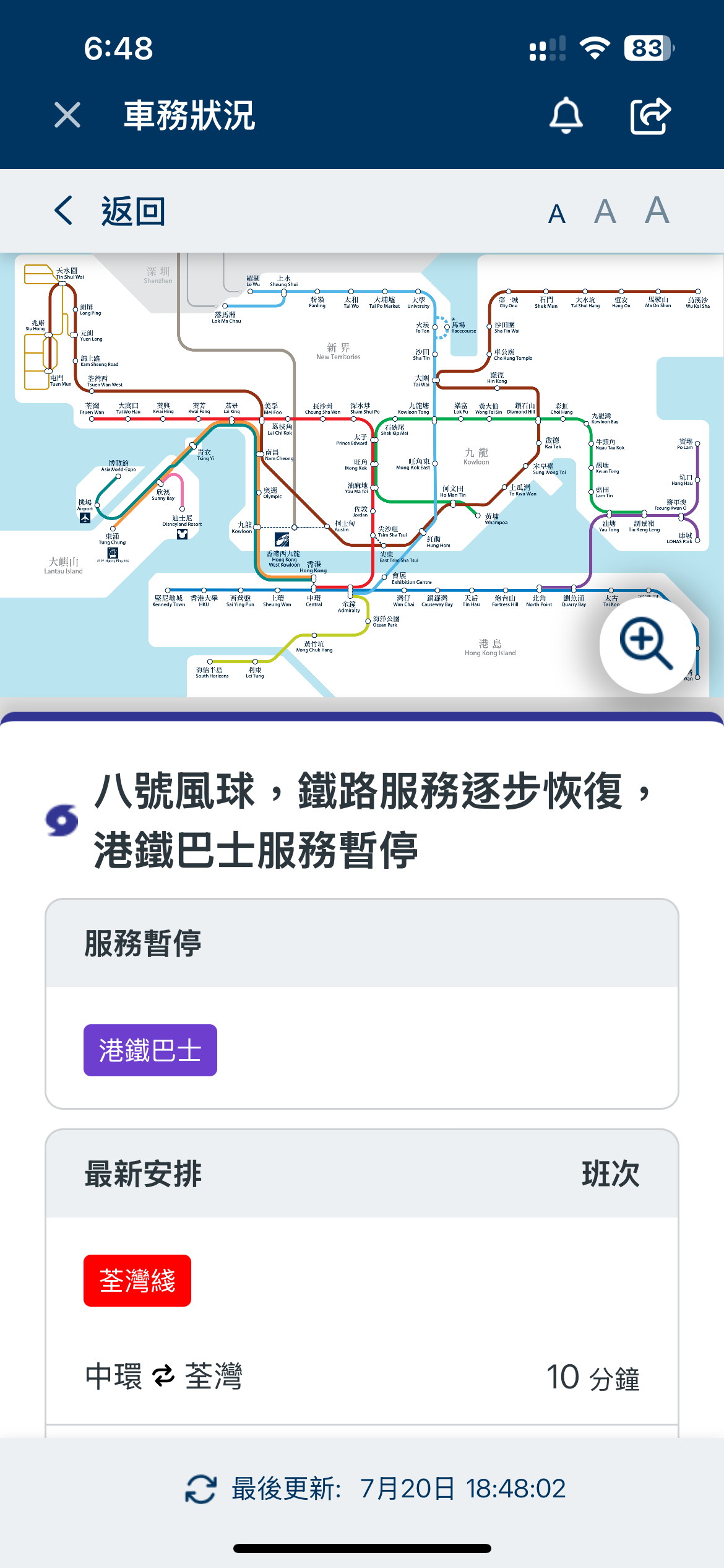 港鐵表示,所有鐵路綫已恢復全綫服務。