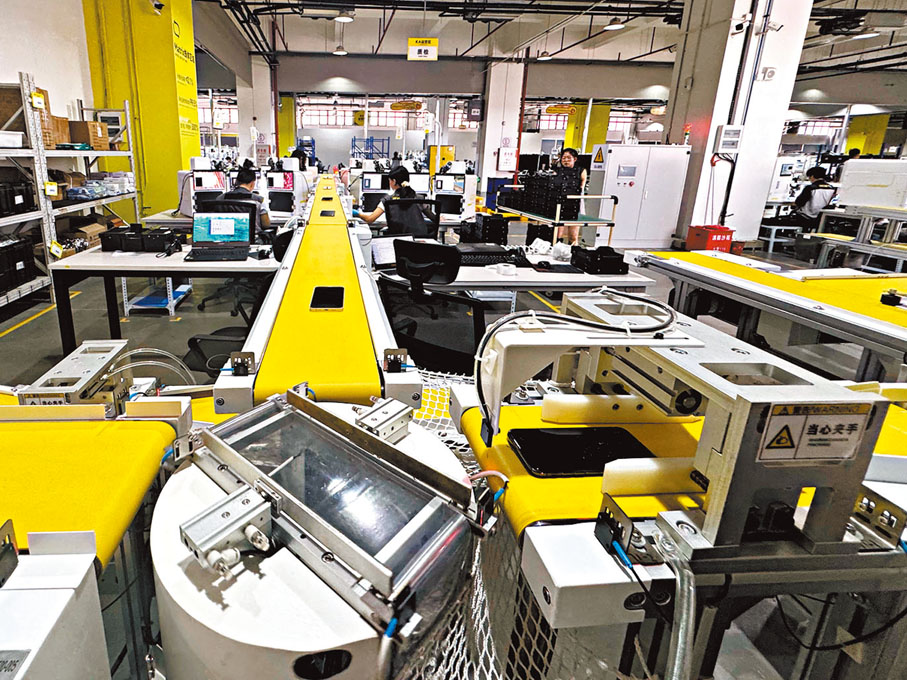 距離深圳華強北約一小時車程的東莞,有一座回收二手設備的「AI工廠」異軍突起。「從進倉到出倉,我們平均3日至4日即可完成全流程周轉。」在走訪ATRenew自動化運營中心時,萬物新生集團副總裁、運營體系負責人郭佳向香港文匯報記者介紹說,雖然項目在今年才投入營運,但已經成為華南地區最大二手電子分撥中心之一。