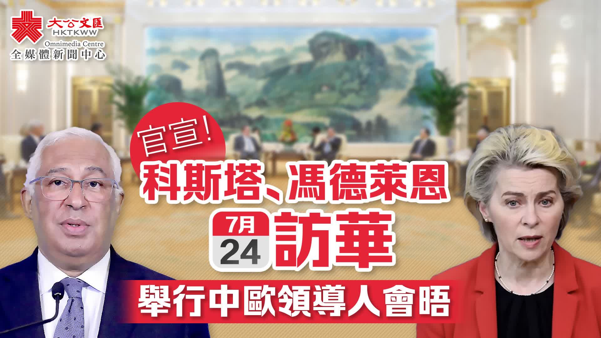 據新華社消息,外交部發言人7月21日宣布:經中歐雙方商定,歐洲理事會主席科斯塔、歐盟委員會主席馮德萊恩將於7月24日訪華。國家主席習近平將會見科斯塔主席和馮德萊恩主席,國務院總理李強將同歐盟兩主席共同主持第二十五次中國—歐盟領導人會晤。