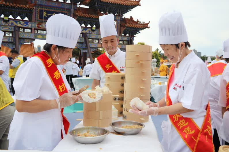 活動期間,100名來自餐飲、自媒體、教師等不同行業的呼市「燒賣宣推官」集體亮相,形成「全民代言」的熱烈氛圍。百名燒賣技藝師傅齊聚現場展示精湛手藝,直徑15米大型蒸籠現場蒸制燒賣,騰騰熱氣裹挾着濃郁的鮮香撲面而來,吸引眾多市民遊客排隊等候,爭相品嘗這地道的青城美味。