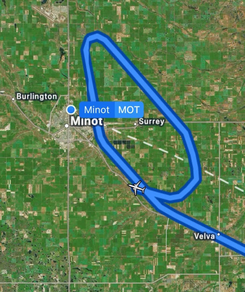 對此,運營該航班的美國支線航空公司「天西航空」在聲明中稱,該航班在獲得塔台准許後安全降落在邁諾特,該公司正在調查此事。