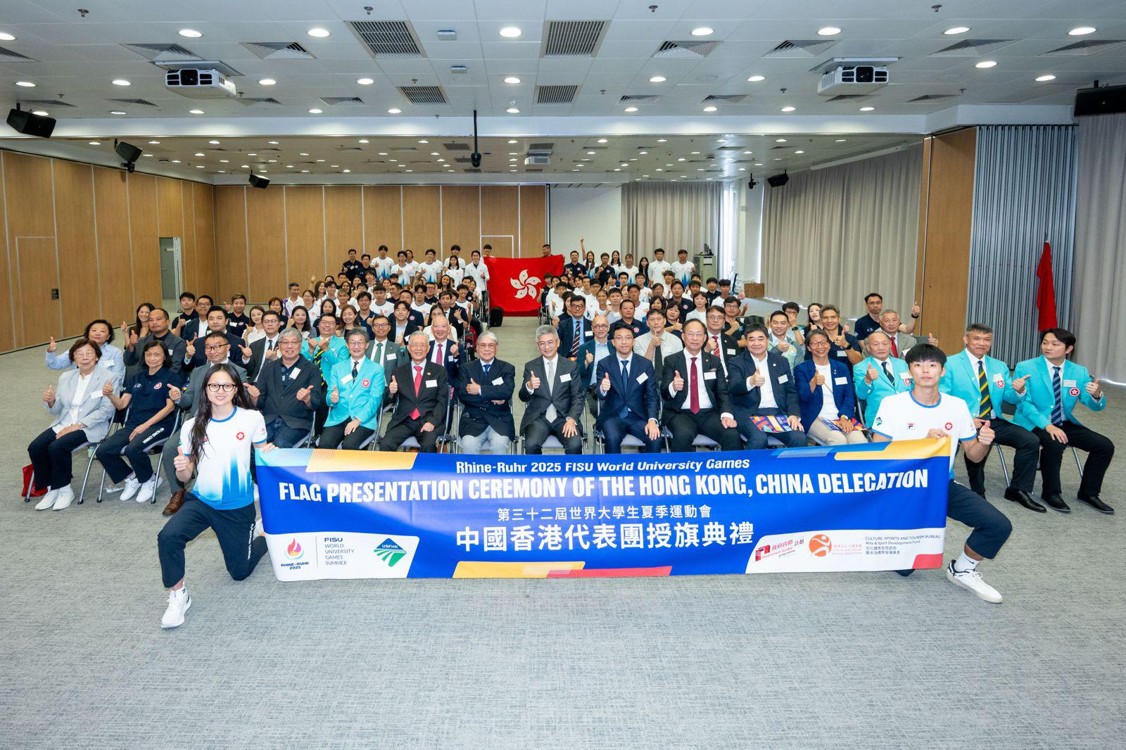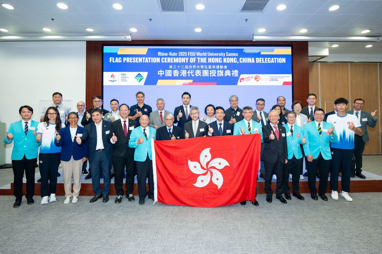世大運中國香港代表團的授旗儀式於7月8日圓滿舉行,由署理文化體育及旅遊局局長劉震先生及中國香港體育協會暨奧林匹克委員會會長霍震霆先生將區旗授予代表團。教大學校協作及體驗事務處總監甘偉強博士率領一眾教大代表出席儀式。