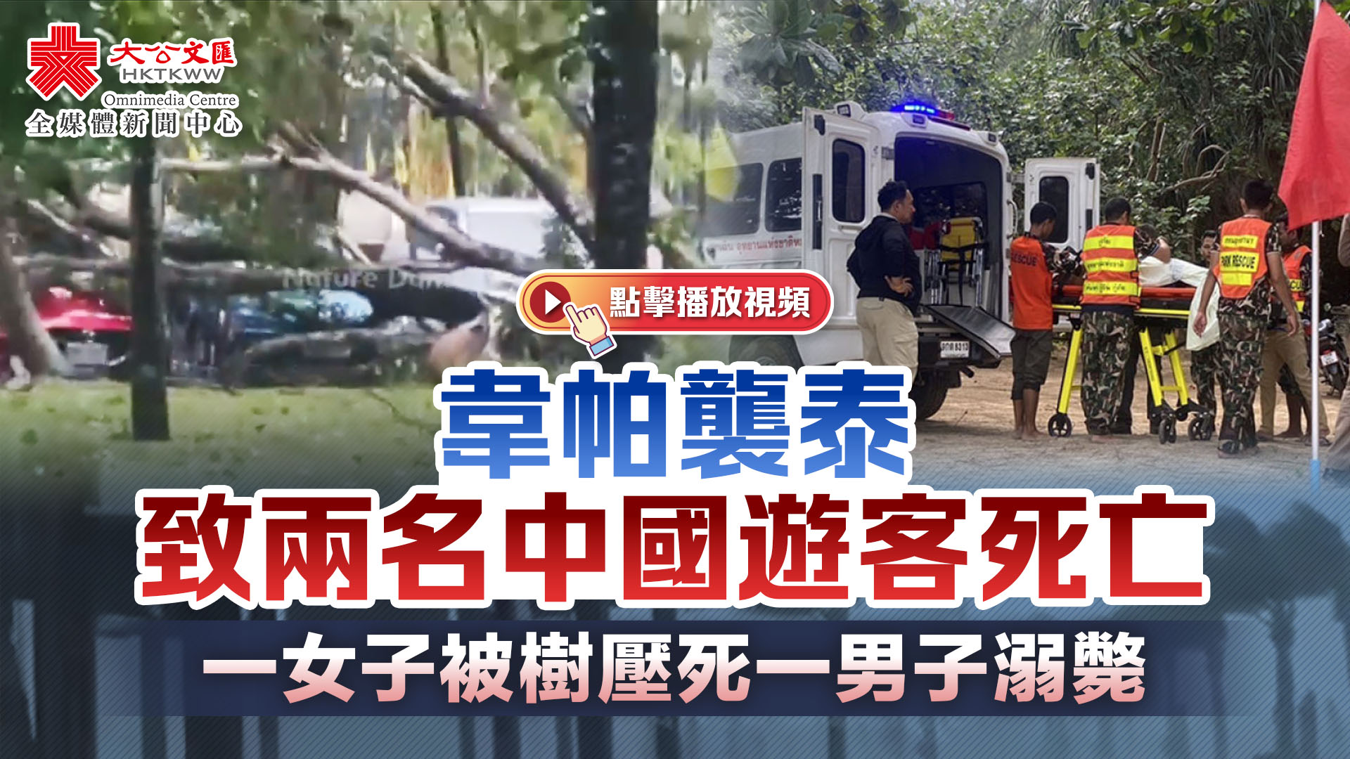 大公文匯全媒體報道,據泰國《曼谷郵報》報道,颱風韋帕昨日(20日)在泰國帶來狂風暴雨。布吉島和甲米府受暴風雨襲擊,造成兩名中國遊客死亡。