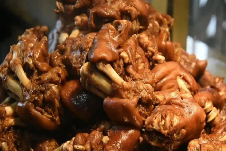 這裏的豬頭肉肥而不膩,豬大腸口感緊實又富有嚼勁,豬蹄則軟糯Q彈,滿滿的都是膠原蛋白。如果怕膩,還可以配上蒜頭、燒酒和燒餅。一口酒,一口肉,一口蒜,一口餅,各種滋味匯聚唇齒,讓人直呼過癮!