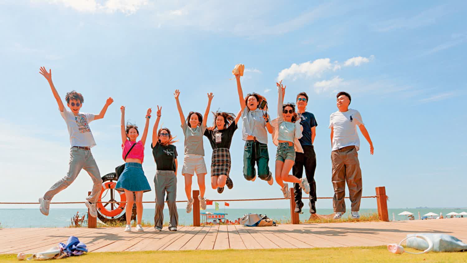待至九時,燦爛的陽光已然普照整片大地,學子們轉赴綿延28公里的日照陽光海岸綠道。在海邊棧道與林間小道之間穿梭,看見綠道將自然野趣與城市活力精巧縫合,學子直觀體味日照「藍綠交織」的生態發展理念。與志同道合的年輕人一同看過日出後又遊覽陽光綠道,感受着日照海風裹挾綠意撲面,香港教育大學的嚴鈺儀感慨:「我們見證太陽在日照的海平線上升起,其實日照的陽光也在見證着我們小組的友誼。」