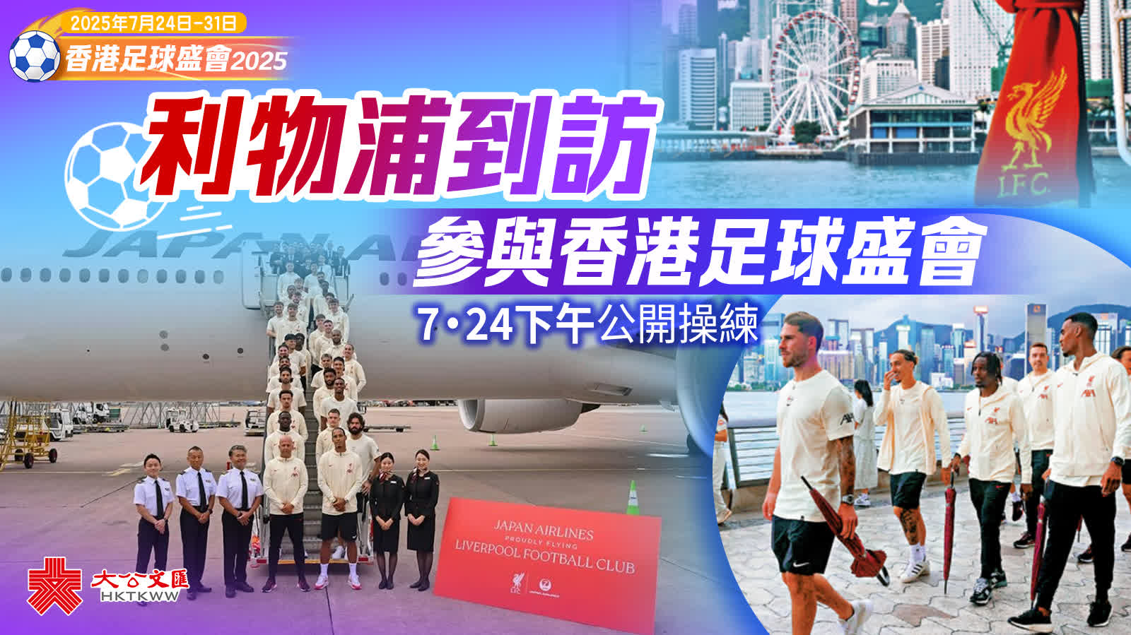 (大公報 記者 譚德龍)利物浦、AC米蘭、阿仙奴和熱刺4支英超與意甲勁旅,將先後於本周六及下周四在啟德體育園進行「香港足球盛會2025」,而上季英超冠軍、「紅軍」利物浦昨午就率先飛抵本港,準備本周六晚對AC米蘭的熱身賽;大軍今次亞洲之行帶同了29名球員,包括球迷熟悉的穆罕默德沙拿、隊長華基爾雲迪積克、以破英國轉會費紀錄加盟的德國中場科利安華迪斯等,利物浦方面與本港球迷會都安排了各種活動,相信未來幾天都會成為熱門話題。