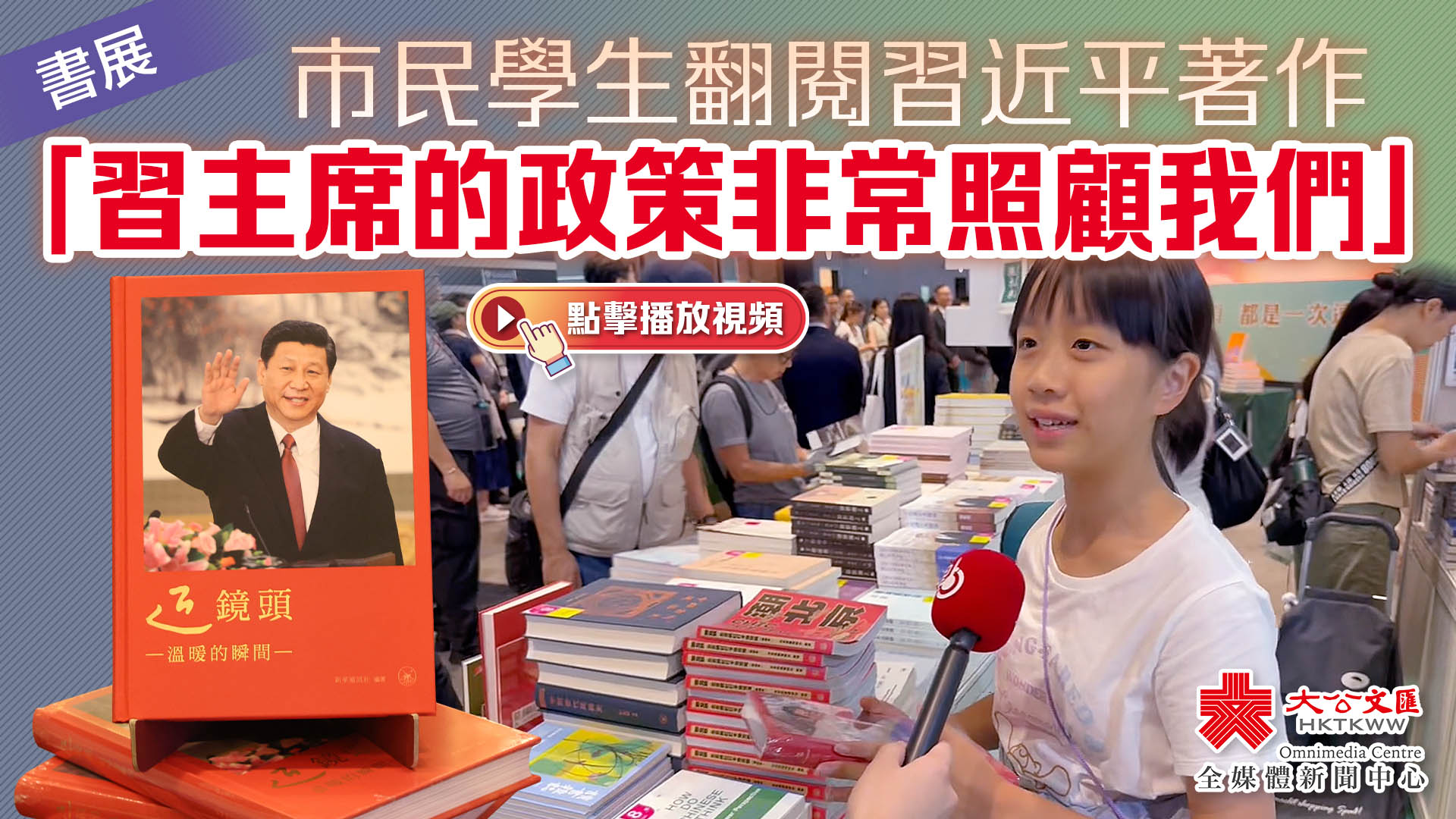 準備升中一的洪同學手上拿着習近平主席的《近鏡頭:溫暖的瞬間》,她說:「習主席的政策非常照顧我們,這本書對我來說可以了解習近平主席的施政方針。」她表示,自己亦經常回內地,這本書能夠讓她對內地不同地方更加熟悉,相信將對她未來的學習非常有幫助。