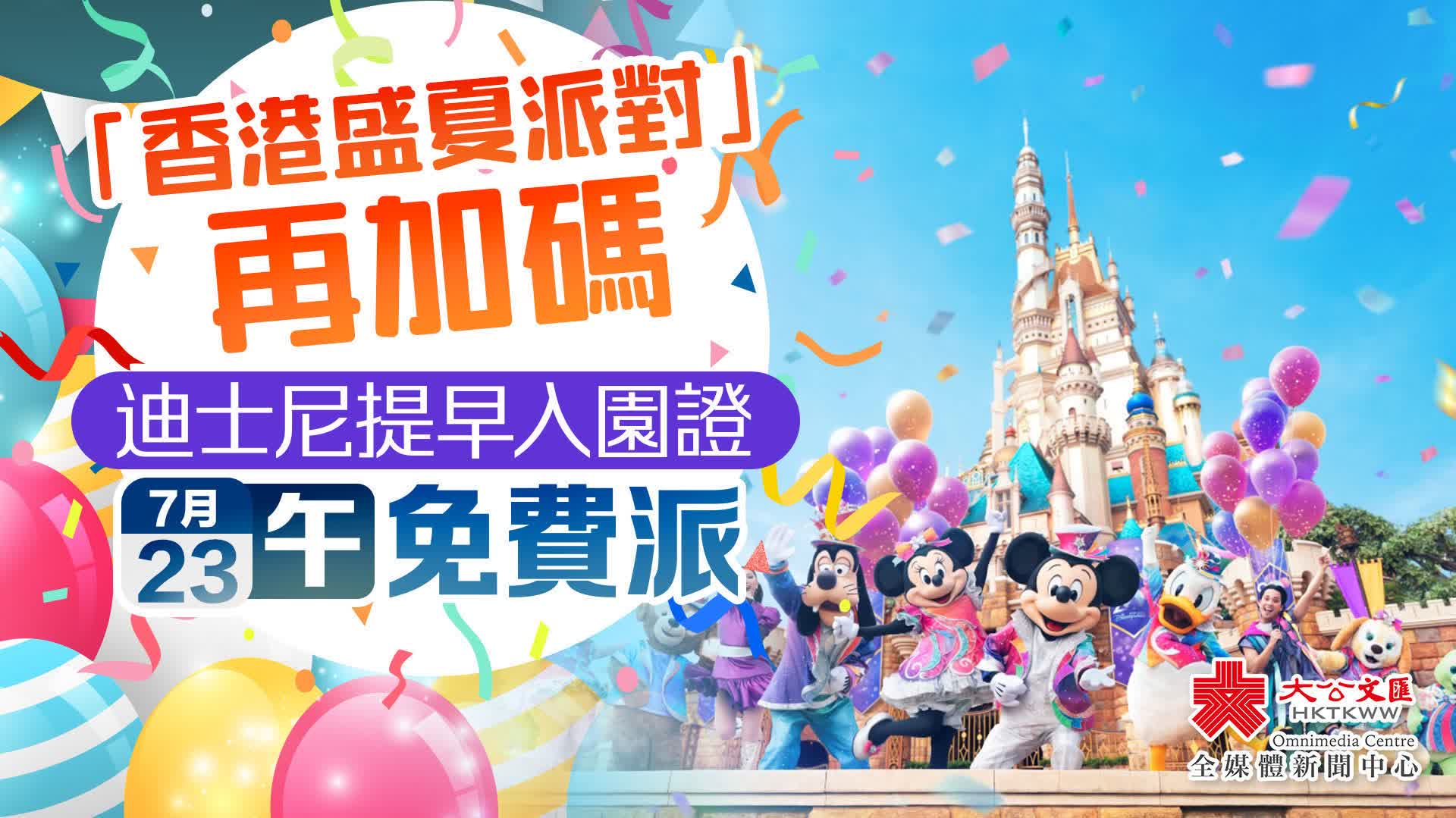 需要特別留意的是,為旅客而設的第二批「香港迪士尼樂園度假區免費提早入園證」亦將於明日(23日)正午12時起開放領取,每個有效日期名額50張。成功領取免費提早入園證的旅客,可在所選日子於樂園的正式開放時間最多一小時前進入樂園一次;而提早入園證並不包括進入樂園之門票,旅客須與當日有效之樂園門票一併使用。