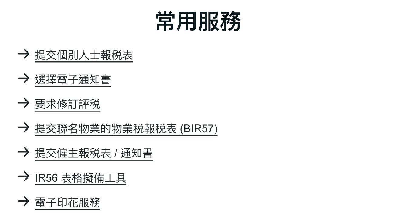 「稅務代表網站」則專為稅務服務代理人(稅務代表、公司秘書及其他稅務服務提供者)而設,方便他們管理客戶的稅務事宜,包括提交報稅表、合規追蹤等。