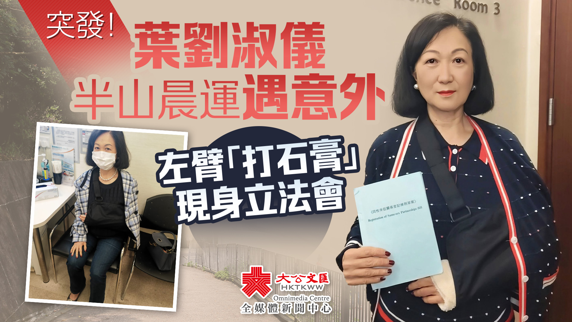 她表示,輕傷雖然帶來少許不便,但依然會全力投入議會工作,又感謝求診期間醫護悉心照料,並感謝各方好友關心及慰問。