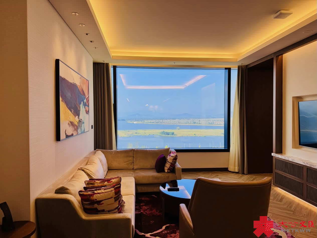 度假城內由翠林樓、輝映樓、海洋樓3棟五星級塔樓組成,共1275間客房。在相關負責人的帶領下,記者參觀了親子家庭首選的翠林樓。一走進樓內,活力繽紛的色調和自然元素裝飾撲面而來,彷彿置身於一個充滿生機的童話世界。基礎房面積達 40 平方米,空間寬敞舒適,家庭房更是貼心地配備了上下床,輕鬆就能容納二孩家庭,讓人感受到滿滿的誠意和對親子家庭需求的精準把握。