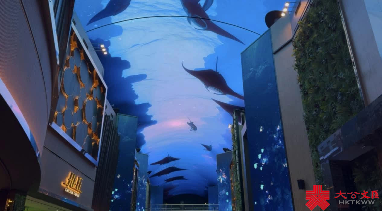 如果從水上樂園出來還意猶未盡,一定要來到韓國新晉網紅景點——極光道。這裏以150米長的22K超高清屏幕和立柱8K屏幕打造出震撼的沉浸式數字藝術空間。