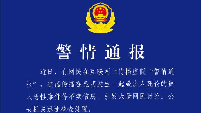 近日,有網民在互聯網上傳播虛假「警情通報」,造謠傳播在昆明發生一起致多人死傷的重大惡性案件等不實信息,引發大量網民討論。公安機關迅速核查處置。