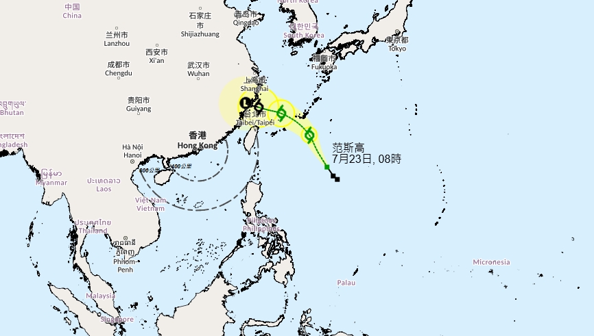 另外,現時位於呂宋海峽以東的熱帶風暴「范斯高」,未來一兩日會大致移向琉球群島一帶,隨後移入中國東南沿岸。天文台預料,周末期間可能有另一個低壓區。