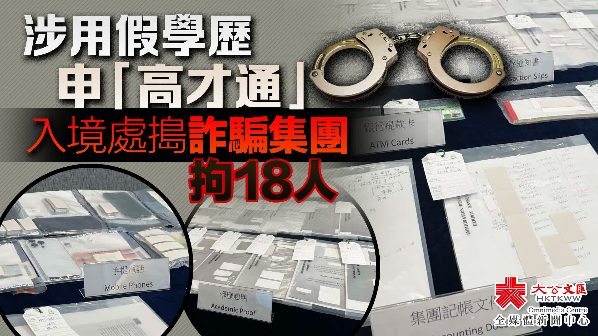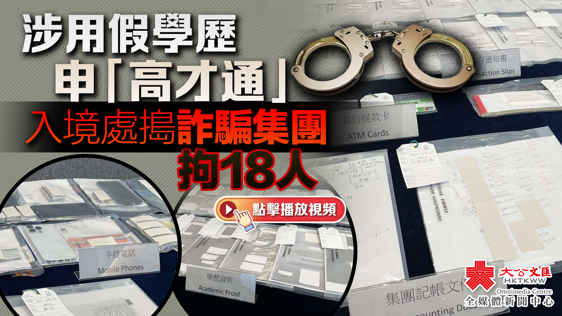 (大公文匯全媒體 記者 劉妍伶)入境處今日(7月23日)表示,行動組早前偵破一宗涉嫌以虛假文書騙取簽證的案件,行動拘捕包括集團主腦、骨幹成員及簽證申請人在內的11男7女共18人,年齡介乎27至56歲。