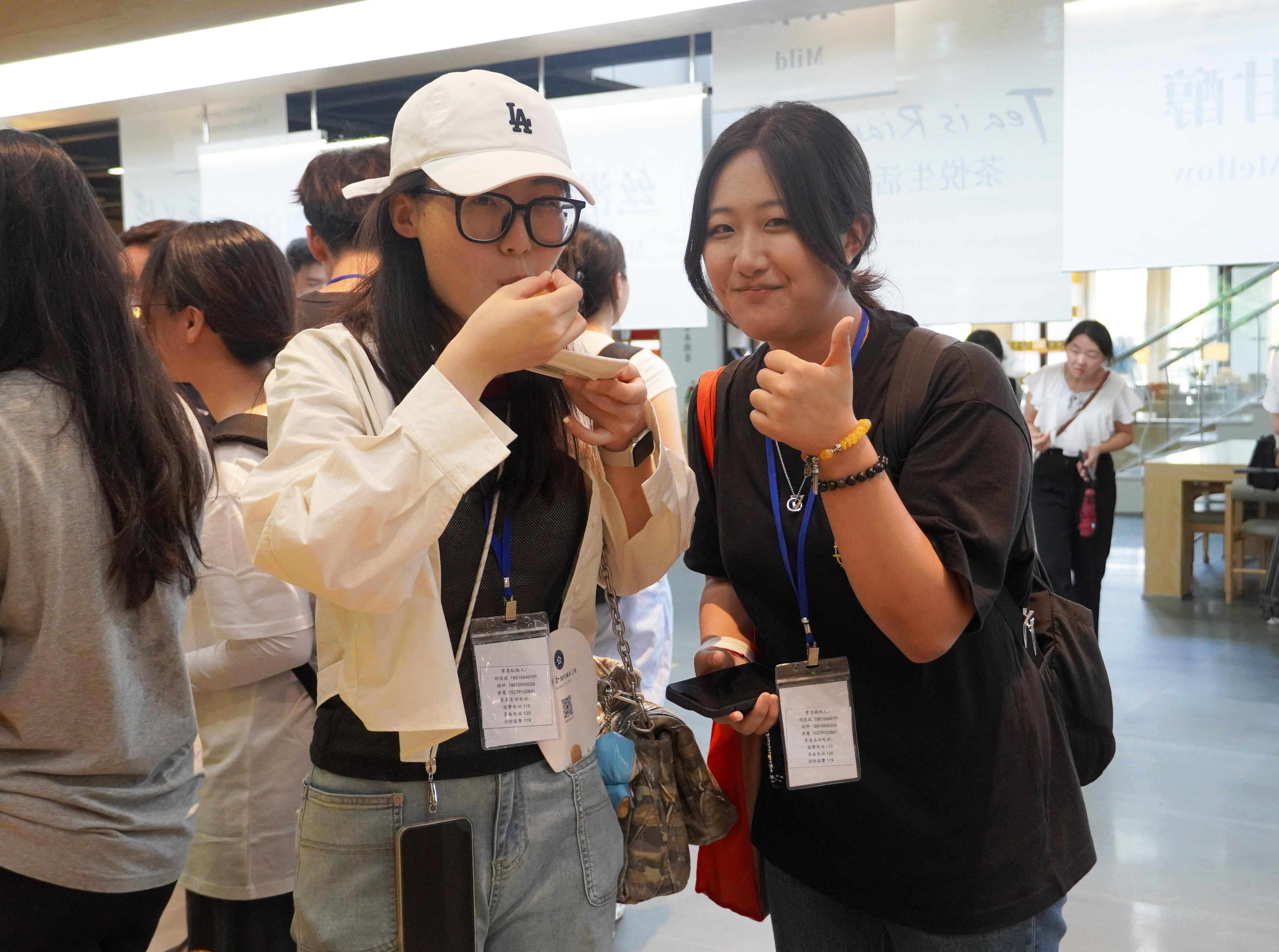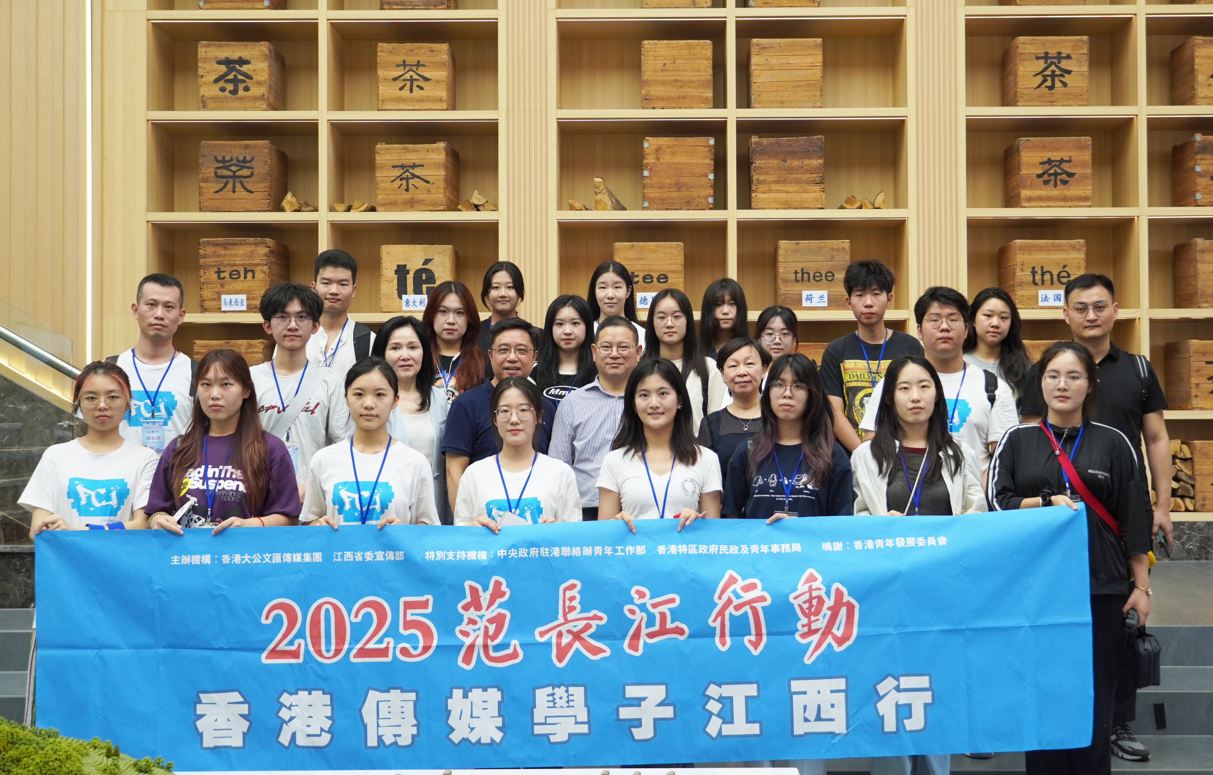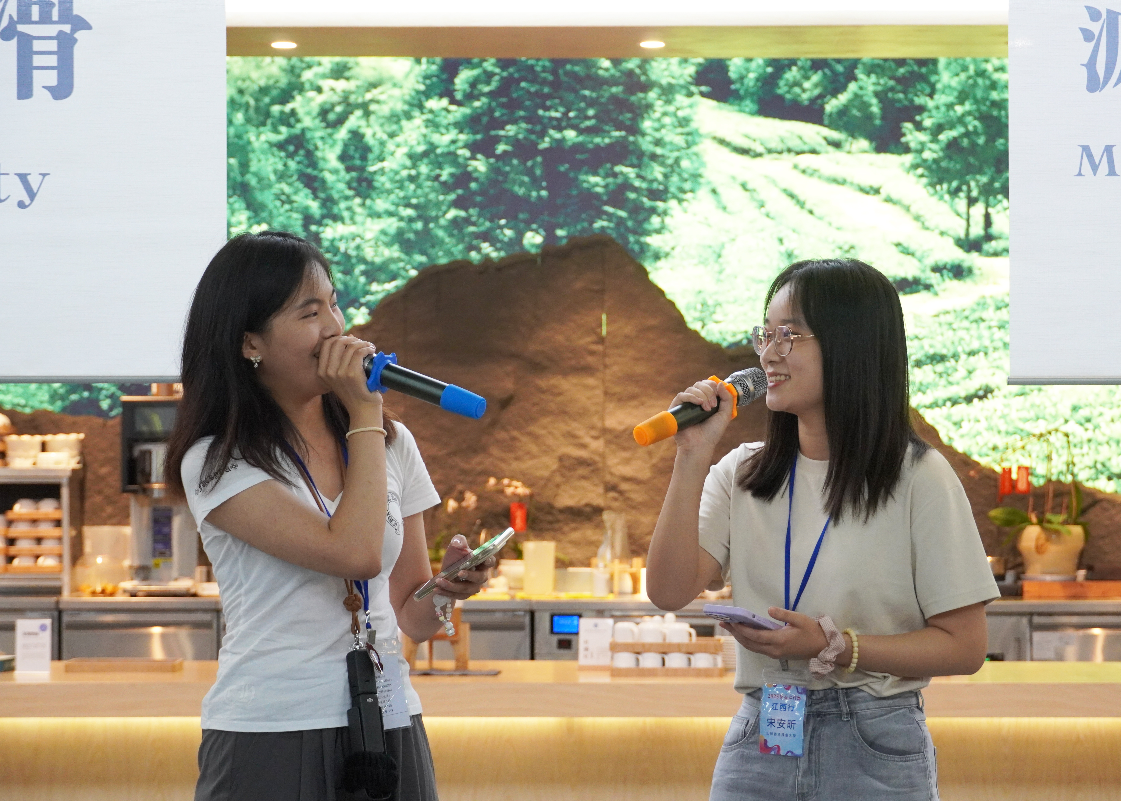 (大公文匯網 記者 張帥、黃慧 江西報道)7月23日,「2025范長江行動─香港傳媒學子江西行」採訪團走進林恩茶·現代城市工廠,對話江西林恩茶有限公司董事長袁利人,開啟一段茶文化之旅,品茗吃茶點,了解中國茶「走出去」的故事。採訪之餘,贛港傳媒學子即興表演才藝,大展青春活力。