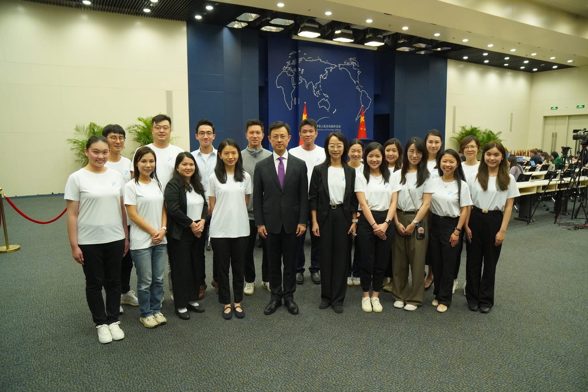21日,參訪團前往外交部,旁聽當日例行記者會,並於發布會後獲外交部新聞發言人郭嘉昆會見。郭嘉昆在社交平台發文指出,他與香港法律界的青年才俊進行了愉快的交談,藉此機會回顧了今年5月30日在香港舉行令人難忘的《關於建立國際調解院的公約》簽署儀式。
